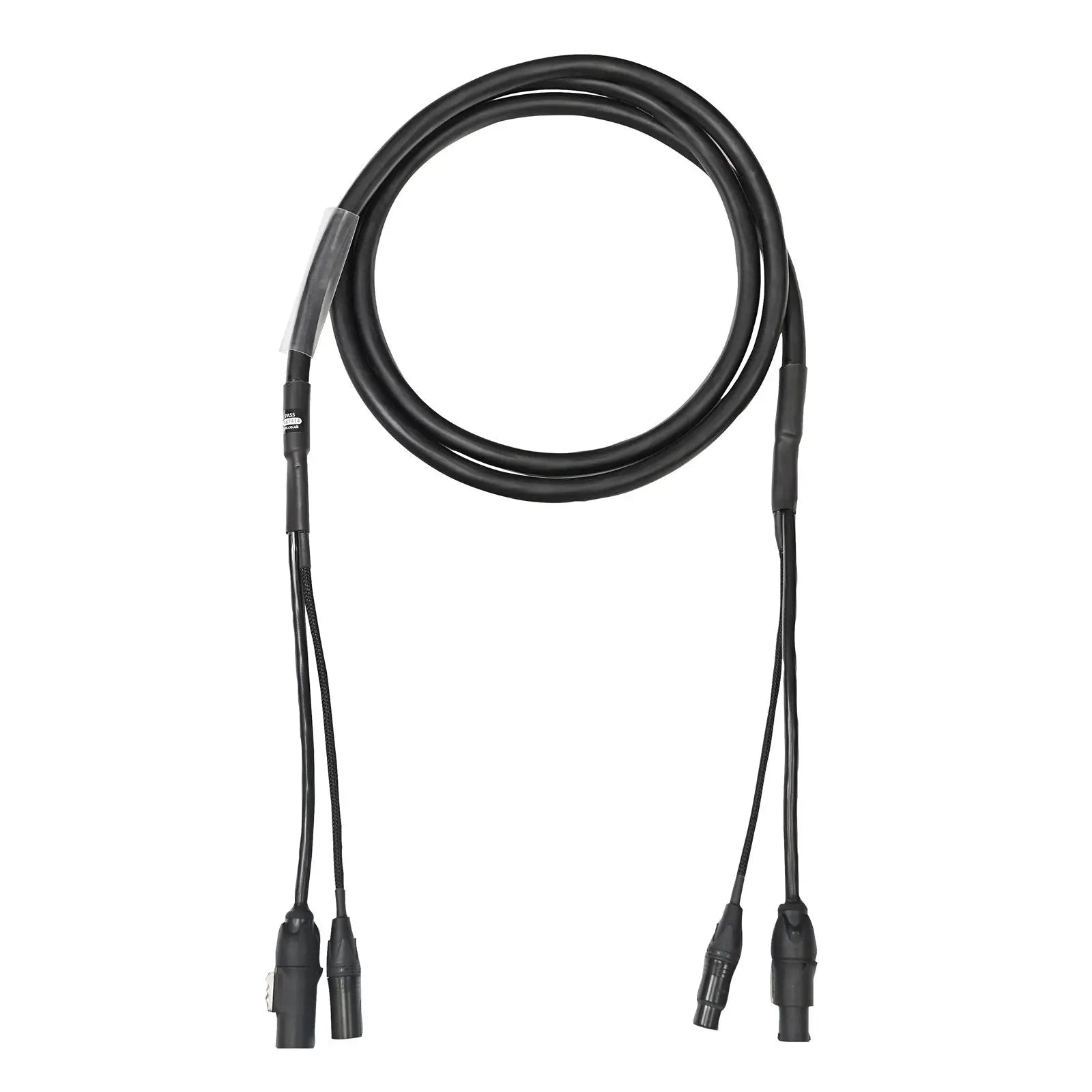 Hybrid multicore DMX signal plus power cables for linking lighting fixtures together in a convenient single outer jacket for speed of rigging while allowing the user to keep cable runs neat and tidy. These British manufactured cables are finished using nylon braided sleeving over the signal cable tail for maximum durability and terminated with Neutrik 3-Pin XLR and powerCON TRUE1-TOP connectors. Constructed using carefully selected fillers to maintain the overall shape and facilitate easier coiling these are ultra-flexible and designed for touring use providing a solution to the problem of integrated signal and power distribution. Made in Britain Neutrik connectors 3-Pin XLR male plus powerCON TRUE1-TOP male to 3-Pin XLR female plus powerCON TRUE1-TOP female Nylon braided signal cable secured by adhesive lined heatshrink Analogue or AES digital audio RS422/485 or DMX512 control with a 3 core power cable H05VV-F harmonised standard 1.5mm² power core Clear heatshrink suitable for identification or asset label Suitable for most 110Ω balanced data applications such as RS422 RS485 DMX512 and timecode Oxygen-free copper cores for maximum signal integrity Length: 15m