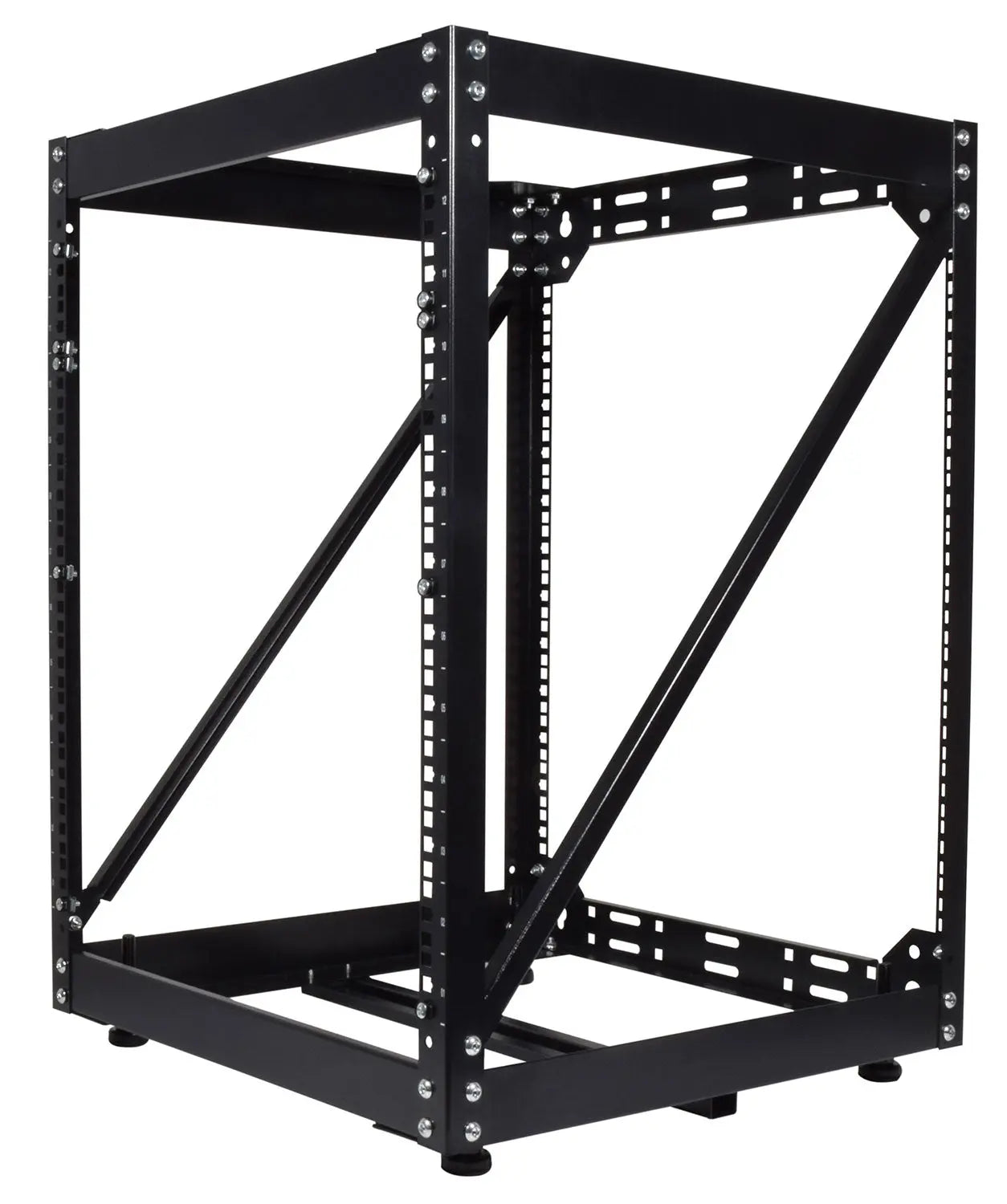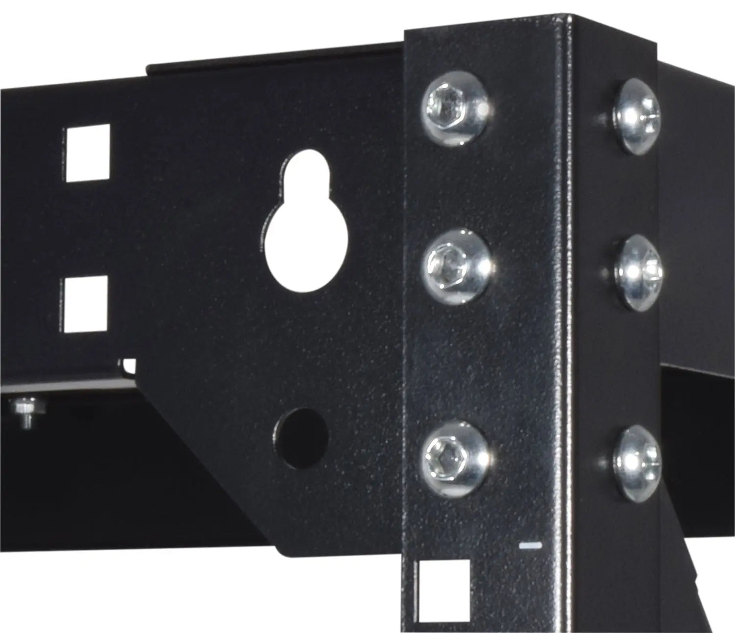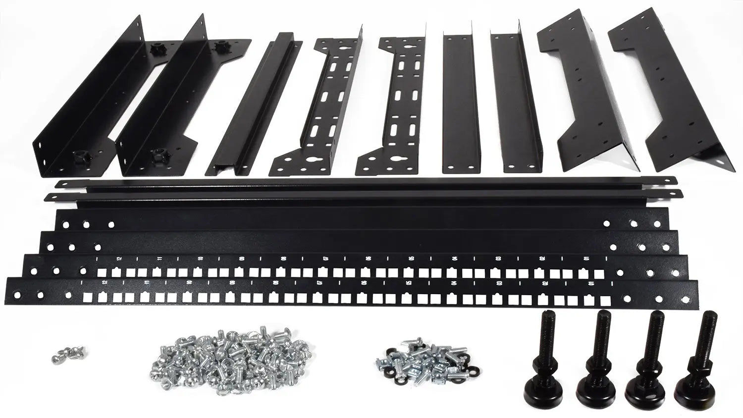 Self-assembly rack frames that can accommodate 19" rack equipment up to 500mm depth. Rear sections have keyhole and round punchings for wall-mounting. Four heavy duty threaded feet are provided for free standing use and are adjustable to allow for clearance and levelling on uneven surfaces. A cost-effective and accessible solution for 19" rackmount equipment.