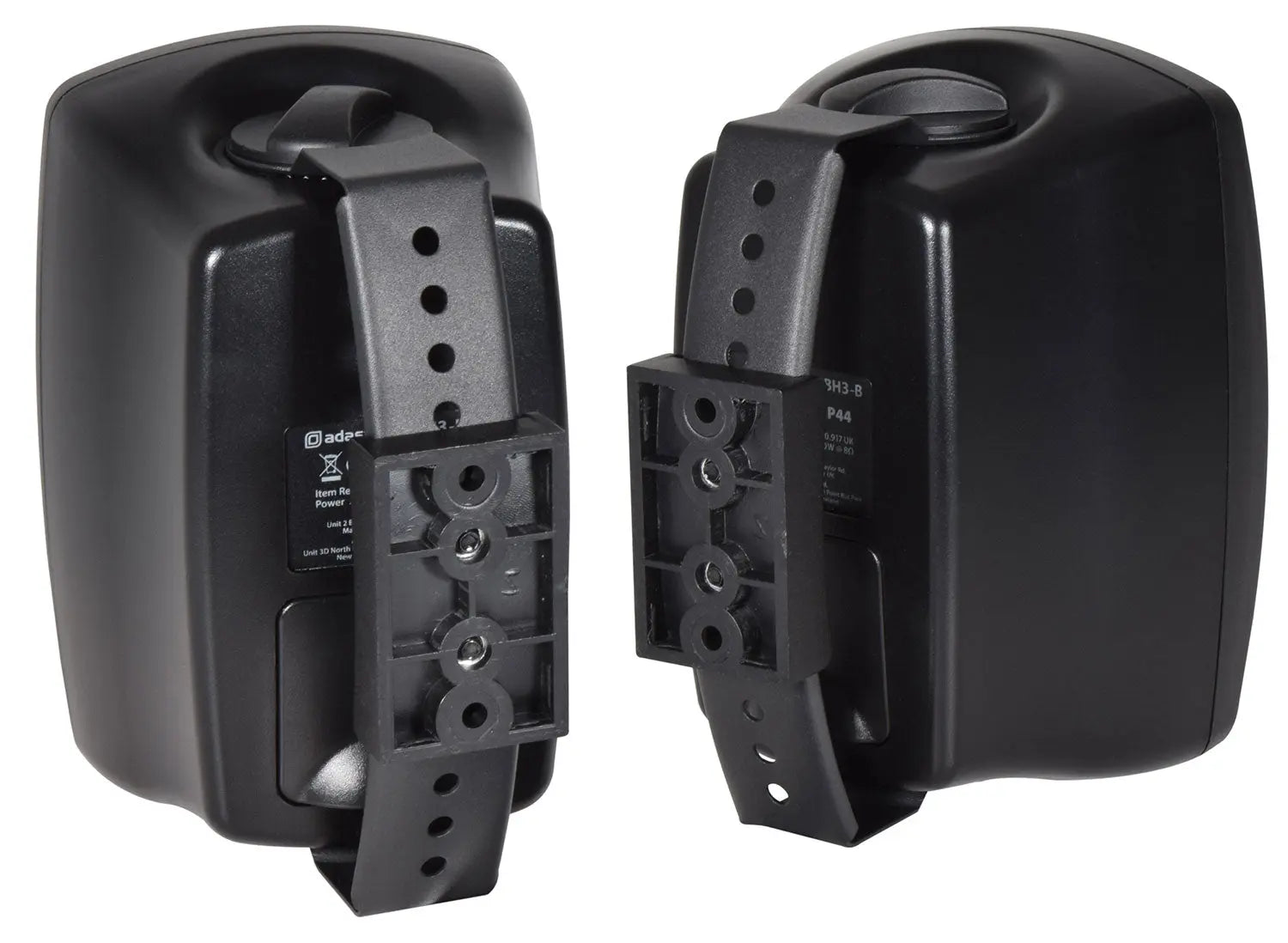High quality IP44 weather resistant speakers with an extended low frequency driver and dome tweeter housed in an efficiently designed moulded cabinet. Each speaker is supplied with a laterally adjustable wall mounting bracket that can also set to various tilt positions for efficient directivity. Designed for indoor or outdoor background music and public address applications.