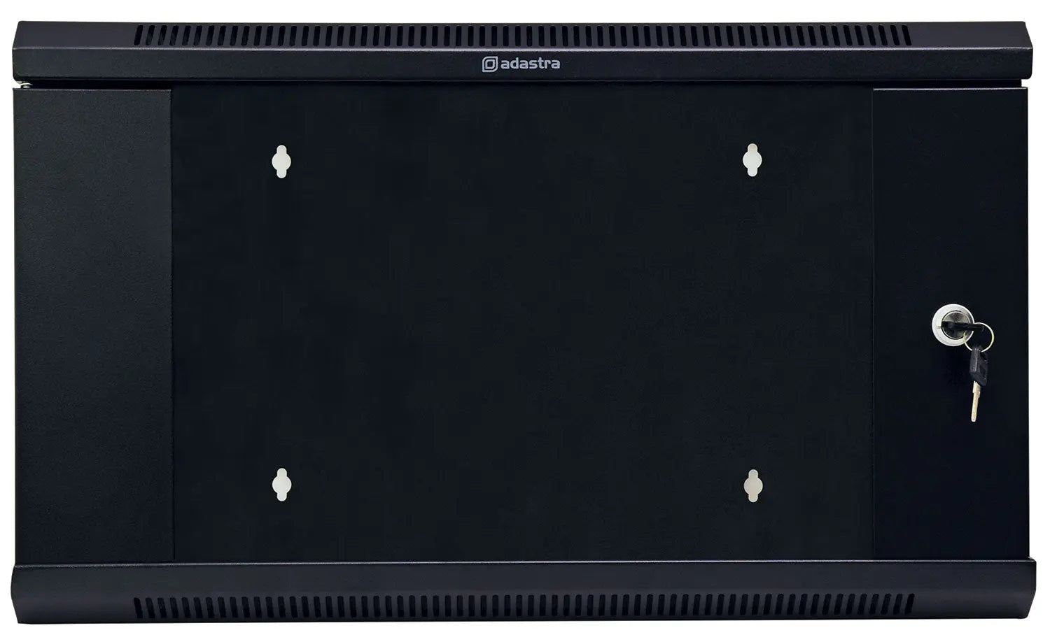 Easy-access cabinets for 19" rack-mount equipment with removable side panels and lockable front door. A lockable rear section is hinged to allow the cabinet to swing out when wall-mounted, revealing the rear panels of installed equipment for access to connections and wiring. Constructed from cold-rolled steel with folded edges for strength and stability. Front and rear rack strip is supplied for mounting to rails inside the cabinet, enabling the mounting depth to be adjusted to accommodate equipment with overhanging fittings or to support the rear of heavy units. The front door is removable and has a pane of 5mm tempered glass flanked by folded steel edge panels which can be mounted to open to either the left or right. Secure and convenient containment for professional rack installations.