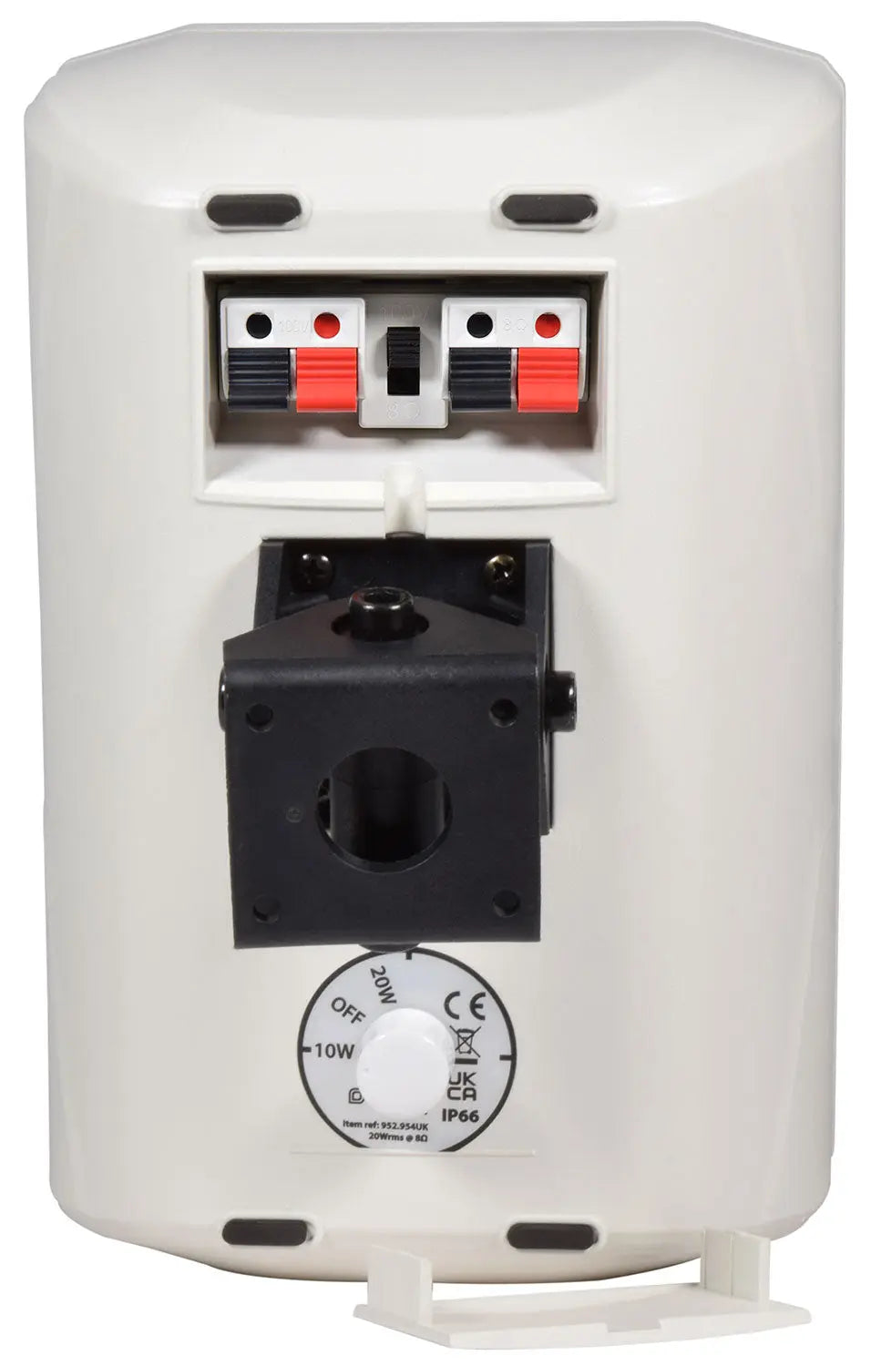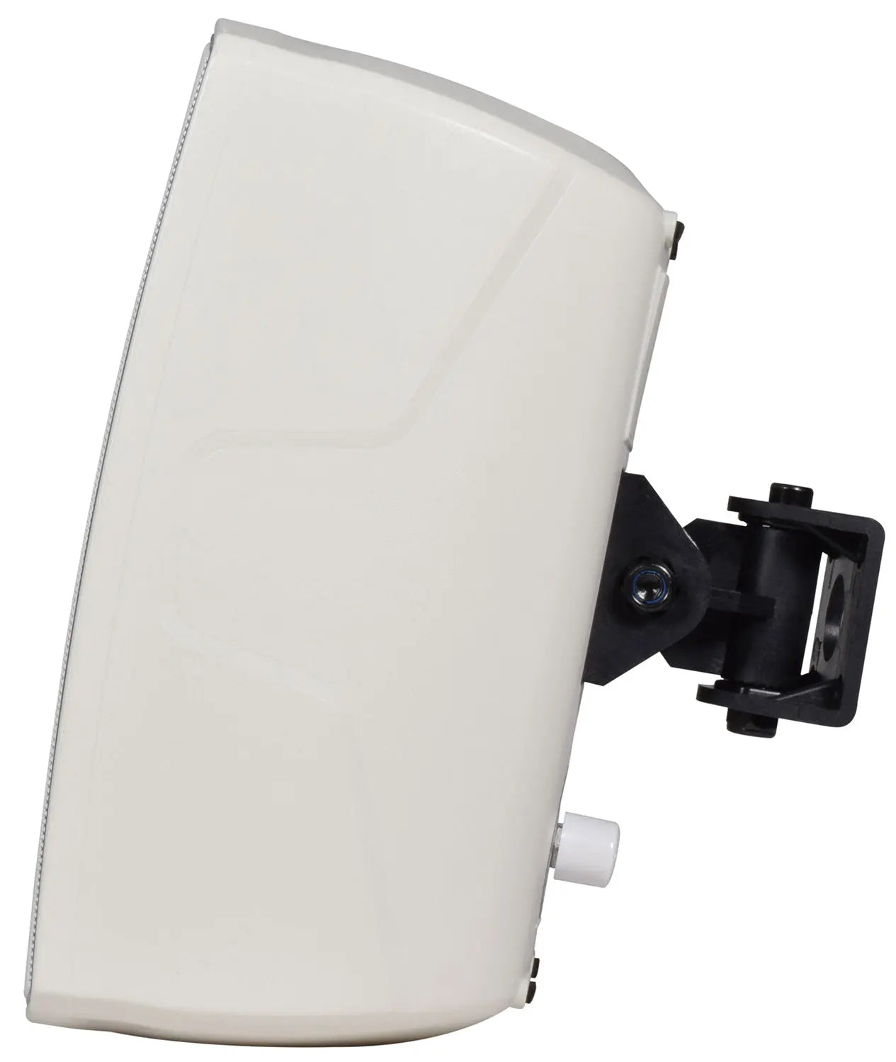 Lightweight PA speakers with moulded ABS cabinets and fitted with 2-axis wall-mounting brackets. Inputs for standard 8 Ohm operation or 100V line with 2 power tappings offer wiring flexibility within different types of installations. Switching to 8 Ohm operation bypasses the transformer for true low impedance performance. Compact cabinets with super light weight make for easy installation onto a variety of wall surfaces and rear pan-tilt brackets enable accurate positioning for best coverage. Cabinets, speaker cones, grilles and brackets are all weatherproofed. A convenient and cost-effective solution for background music and voice announcements in indoor or sheltered outdoor environments.
