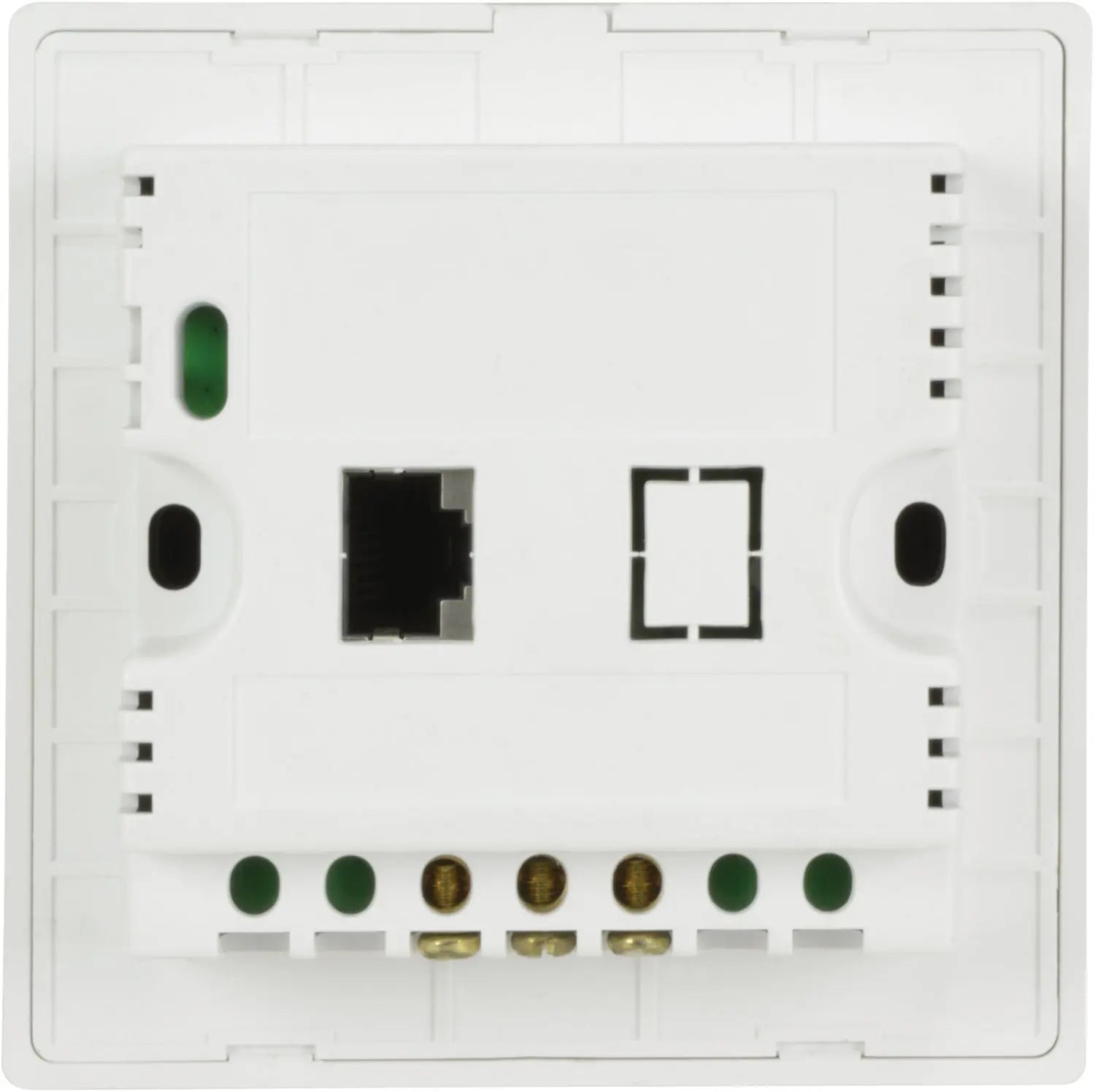Remote control for the RZ45 audio matrix system built into a single gang 86 x 86mm wall plate. The illuminated acrylic touch-operated surface selects between 3 stereo audio sources or the inbuilt media player on the RZ45 and controls the output level to its zone. Connection by standard network cable carries signal and power to the TR86 panel up to 100m away from the RZ45 or signal up to 1km away with a separate 24Vdc power input. Additionally, a mono line level signal can be wired internally to the panel via screw terminals to provide an independent local audio source. Up to 5 TR86 remote panels may be used with a single RZ45 unit controlling up to 5 independent zones.
