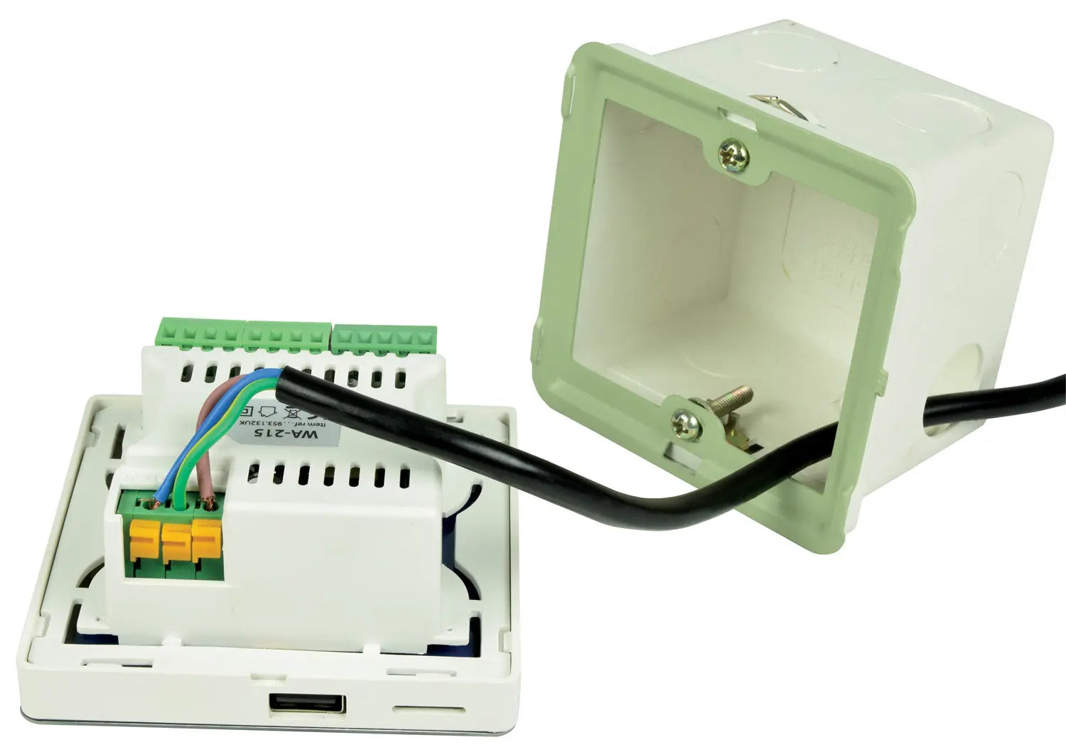 Mounting depth 47mm (with adequate ventilation), 57mm back box supplied