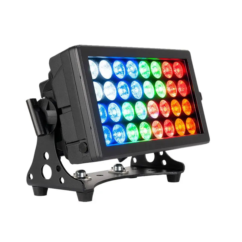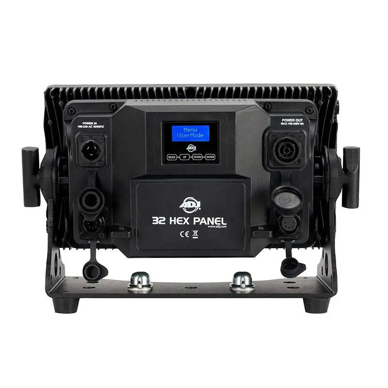 The ADJ 32 HEX Panel IP is an IP65 rated multi-functional wash / blinder / colour strobe fixture for indoor or outdoor use. It features 32x 12W HEX LEDs (6-IN-1 – RGBAW+UV) 8 individually controlled sections with Pixel Zone Control and a 24-degree beam angle. With an all metal black housing and IP65 outdoor rating its protected from elements - dust sand moisture and liquids. It includes a magnetic removable filter frame with a 32 degree diffusion filter to change the beam angle.