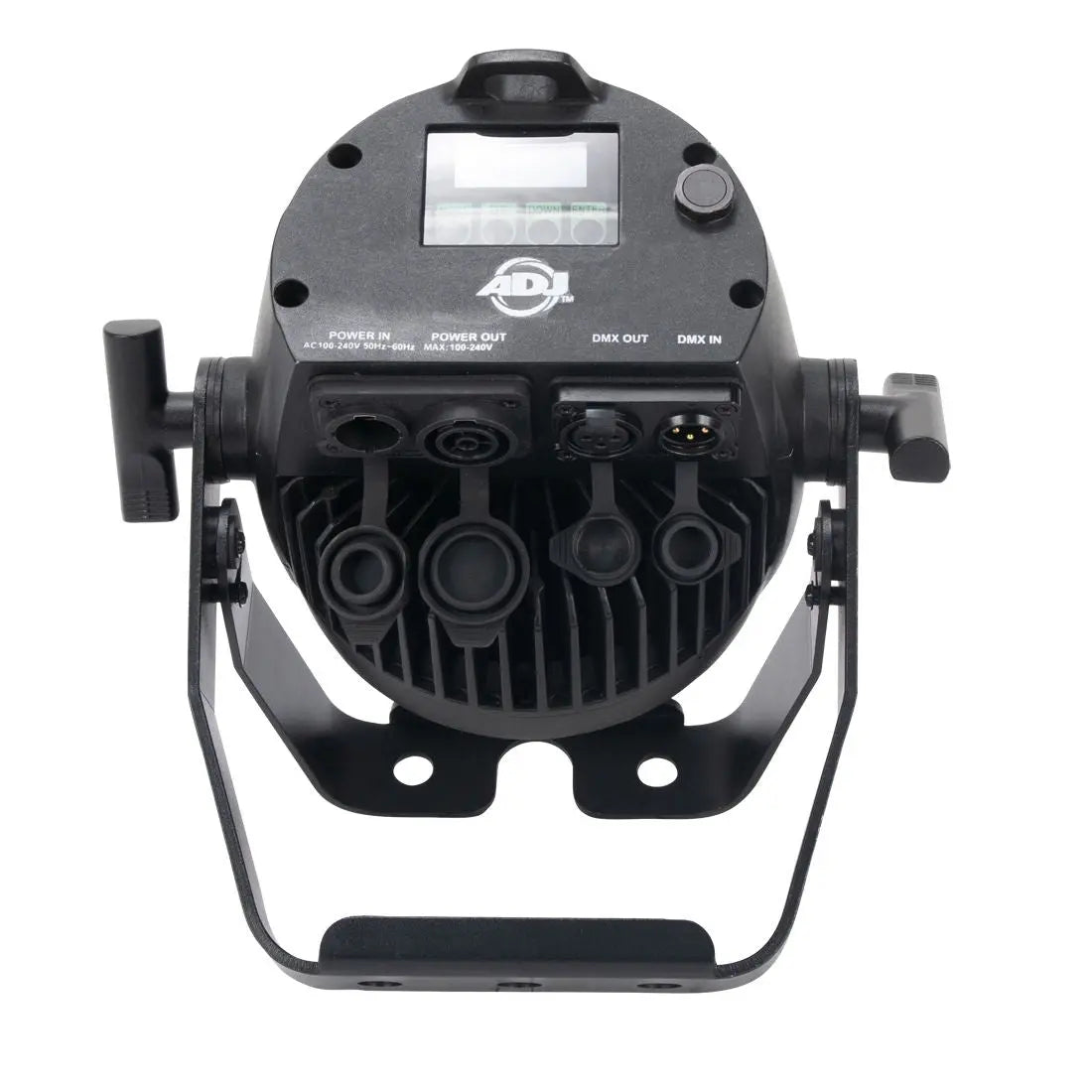 The ADJ 7P Hex IP is a versatile IP65 outdoor rated Par with 7 x 12-Watt (6-IN-1 HEX) LEDs. With a 25-degree beam angle users may produce wide washes with smooth colour mixing from 63 built-in colour macros utilizing red green blue amber white and UV LEDs. Not only is this LED Par great for lighting indoor stages and venues but with IP 65 rating it is a great solution for temporary outdoor lighting of stages or events. The IP 65 rating helps protect the fixture from rain snow and dust.
