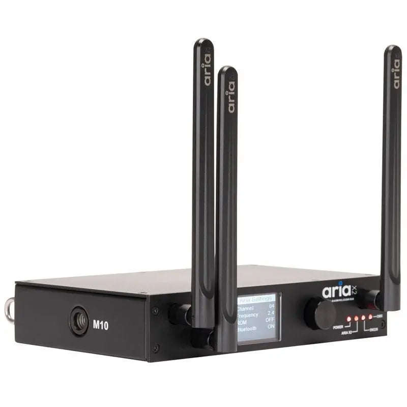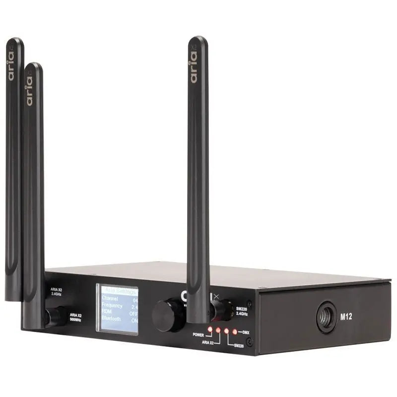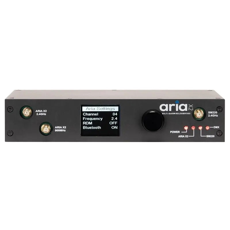 Single DMX Universe 900Mhz. 2.4 GHz WiFi and Bluetooth Configuration via App (Coming Soon) or Front panel Wireless to DMX or DMX to Wireless Aria X2 to SM220 (eFly WiFly MagFly and Acclaim Aria) SM220 (eFly WiFly MagFly and Acclaim Aria) to Aria X2