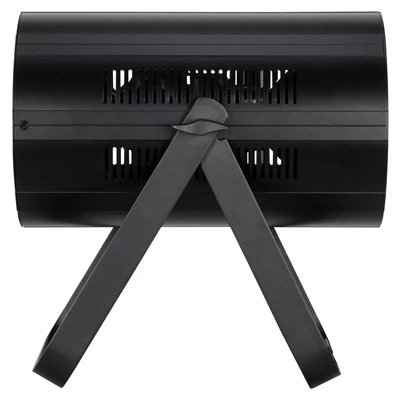 Offering a wide native beam angle of 80-degrees allowing a large area to be washed with vibrant coloured light the fixture is also supplied with a useful lens kit. This comprises both 40-degree and 50-degree lens options which easily and securely clip to the front of the fixture to provide a narrower beam angle when required. For easy integration into an existing control system 5-pin DMX input and output sockets are included on the unit’s rear panel. There are also locking power input and output sockets which can be used to connect up to three fixtures to a single power outlet. It is also supplied with a flexible scissor yoke which can either be used as a hanging bracket or floor stand and barn doors for directing the light output are available as an optional accessory. An Omega Bracket is included so that this fixture can be hung vertically as a pendant light.