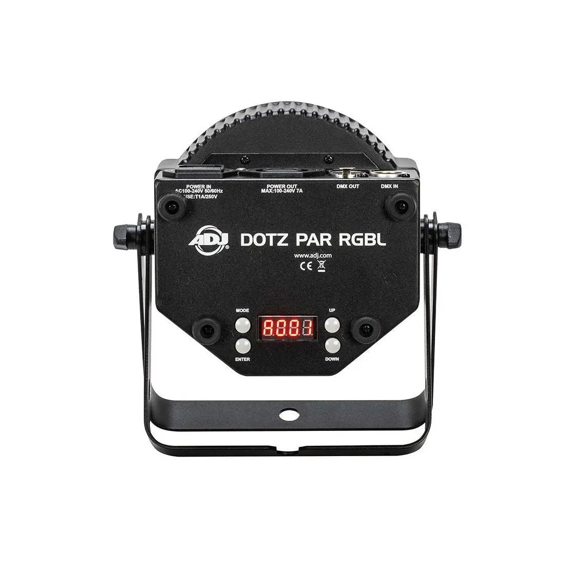 The Dotz Par RGBL has a small footprint and is light in weight making it idea for temporary event production or installation into small stages churches nightclubs or anywhere entertainment lighting is required. The 4-button DMX display allows for easy navigating into the fixtures flexible functions. There are 6 operational modes 6 dimmer curve modes 4 selectable dim curves and supports DMX and RDM protocols.