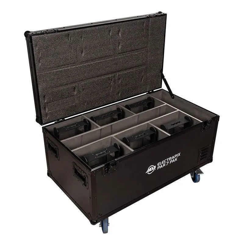 5. ElectraPix Par 7 FC (Flight Case) (x1): Safeguard your investment and transport your equipment with ease using the ElectraPix Par 7 FC flight case. This rugged and well-designed case provides a secure and organized storage solution for your lights charging bases remote control and power cable. The dimensions of the flight case (LxWxH): 577x1026x567mm ensure that your lighting setup remains protected during transit.