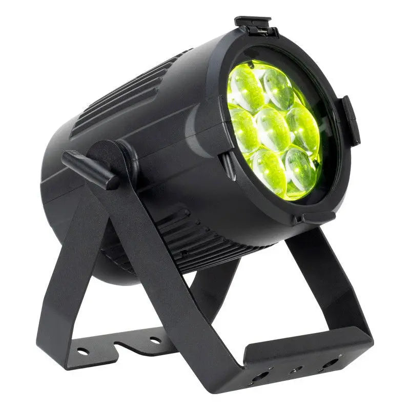Part of ADJ’s Lime Par series of LED fixtures the Encore Z7LP is a compact and versatile professional par fixture. Its motorized zoom function allows the beam angle to be adjusted remotely via DMX between a concise 5-degrees and a wide 50-degrees. This means that the fixture can be easily utilized both to create a tight pool of light or broad wash even switching between the two for different scenes of the same production. The fixture is supplied with a variable angle scissor yoke which can be used either as a floor stand or hanging bracket as well as an optional barn door accessory for directing the light output.