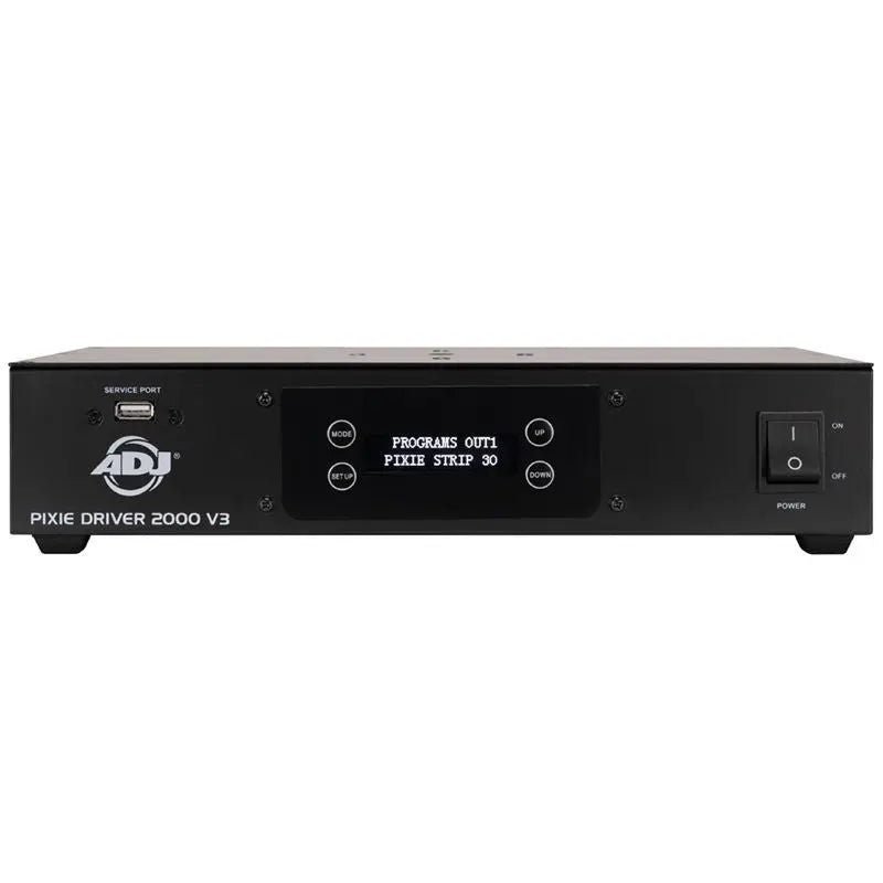 Pixie Driver 2000 V3 is designed specifically for the ADJ's Pixie Strip 30 Pixie Strip 60 Pixie Strip 120 and Pixie Curve 60. It provides easy and versatile control options including simple on-board manual dimming and strobe control plus full pixel mapping control of 2040 max pixels via Kling-Net Art-Net or sACN (streaming ACN) protocols.
