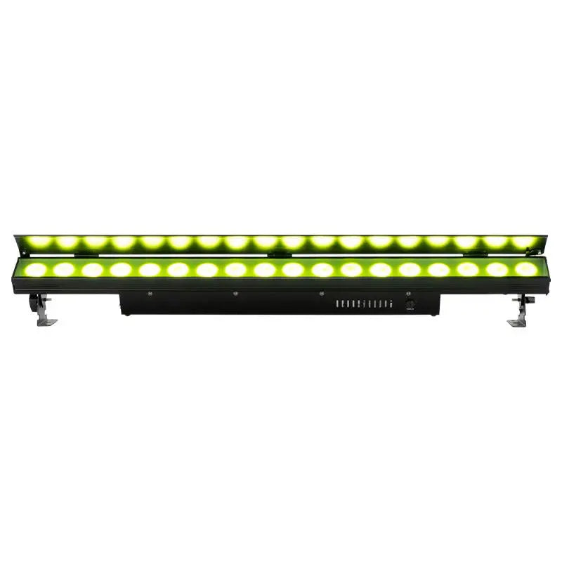 Delivering vibrant and punchy colour mixing output ADJ’s Ultra LB18 is a professional linear LED wash lighting fixture. Featuring 18 x 10-Watt 5-in-1 colour mixing long life LEDs (red green blue amber & lime) it offers a large gamut of colour possibilities including white light with a colour temperature variable between 2300K and 9900K. The inclusion of a lime LED chip not only increases the palette of colours available from the fixture but also boasts the CRI of its white light output to in excess of 90.