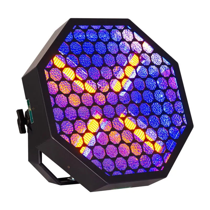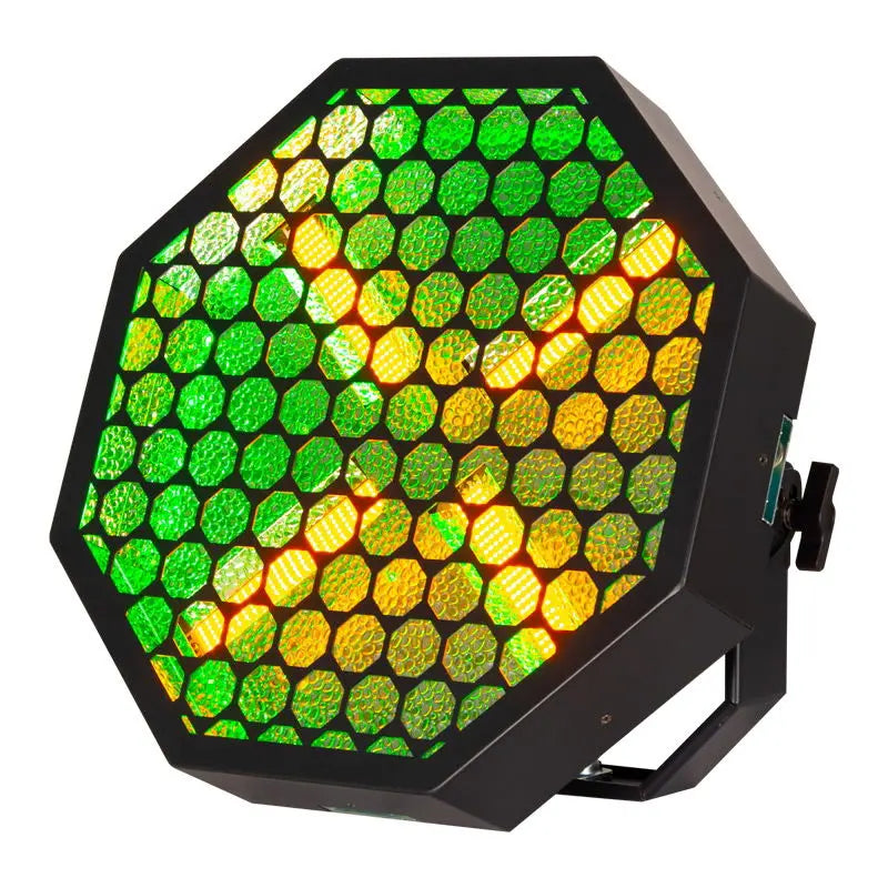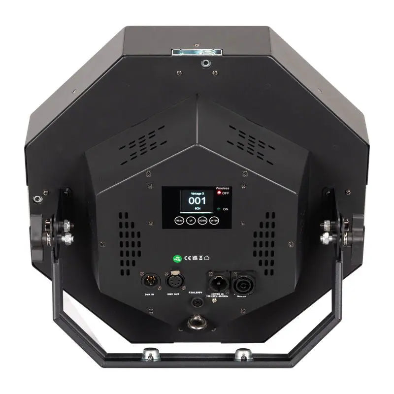 Vintage X is a highly adaptable scenic lighting fixture that sparks creativity and captures attention with its dual-purpose design. Featuring four 60-watt foreground amber LEDs (2000K) it emulates the warm glow of tungsten for a retro blinder effect while 64 vibrant 3-watt RGB LEDs deliver rich dynamic colour tones and stunning effects. This combination allows for smooth dimming transitions and bold captivating lighting displays in an intriguing octagon shaped fixture.