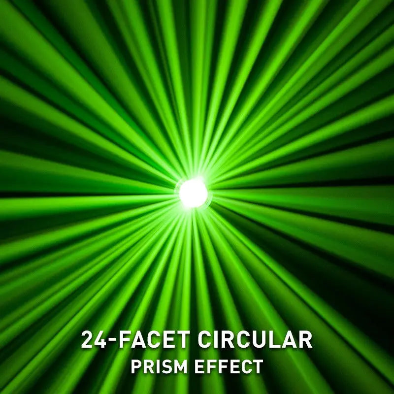 Beam angle: 0.8° Field angle: 1.8° High-quality glass lens 24-facet rotating circular prism 6-facet rotating linear prism Linear frost filter Motorised 16-bit focus