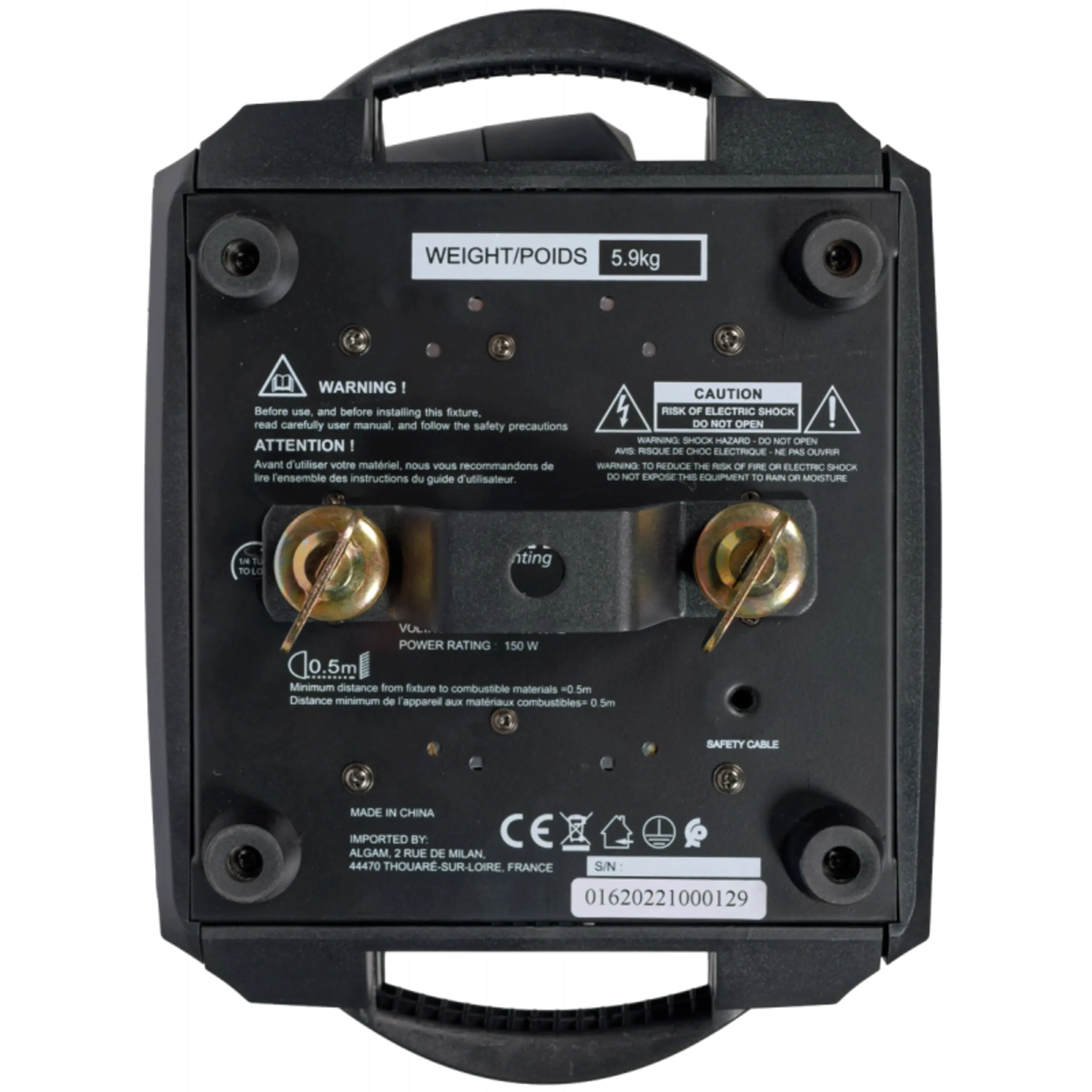 The Algam Lighting MS100 is a professional spot moving head, featuring a powerful 100W white LED light source to create a wide range of impressive effects within a well-designed frame. This lightweight yet resource-packed device (5.9kg) is developed for lighting professionals, offering a motorized focus, a 6-facet variable speed prism, and two gobo wheels (one fixed, one rotating). Its quiet motorization provides tremendous flexibility with 540° pan and 270° tilt, making it suitable for a wide range of fixed and mobile applications.