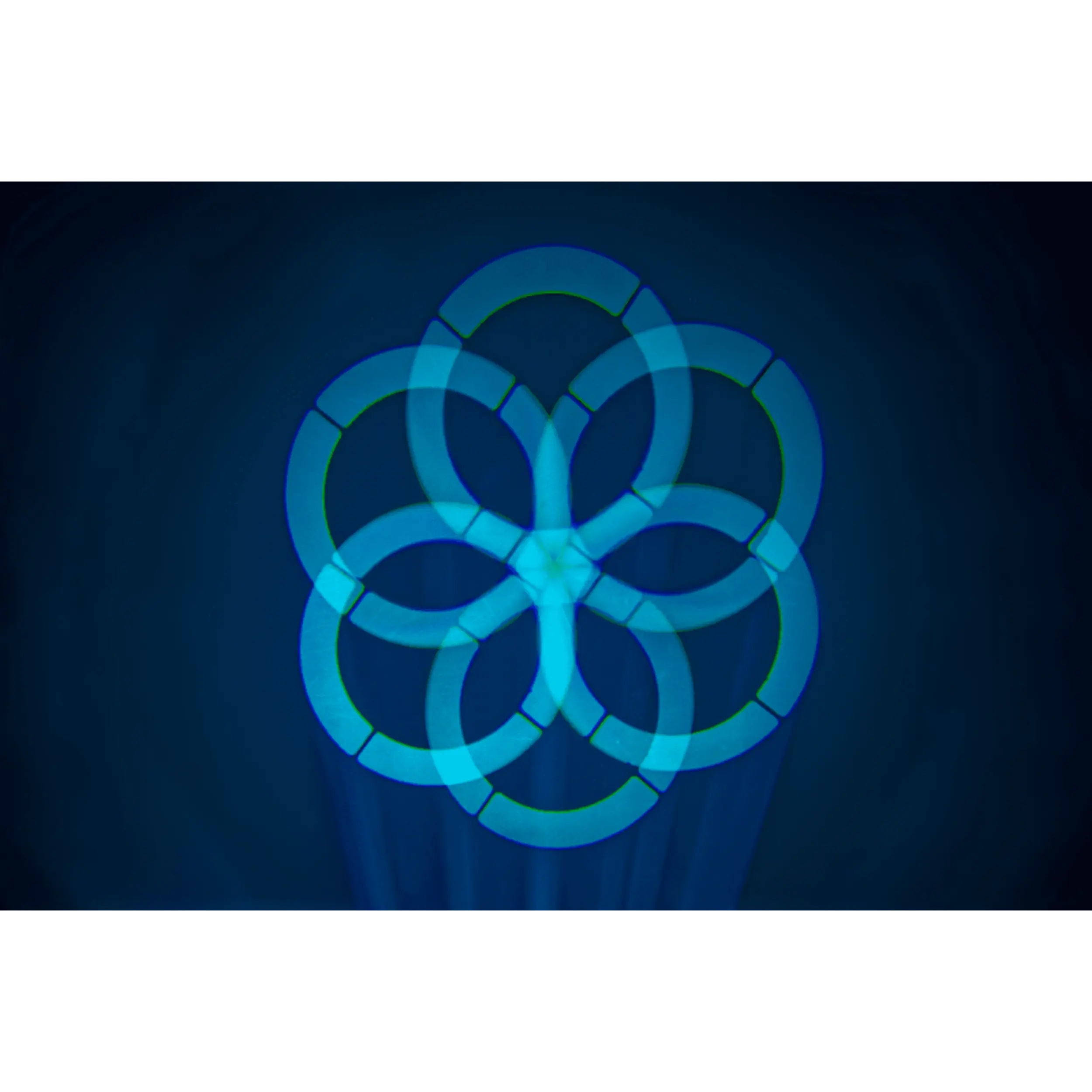 Dual Gobo Wheels: Includes one fixed gobo wheel (7 gobos + open, with wheel rotation and SHAKE effect) and one rotating gobo wheel (6 gobos + open, with wheel rotation, gobo rotation, and SHAKE effect).