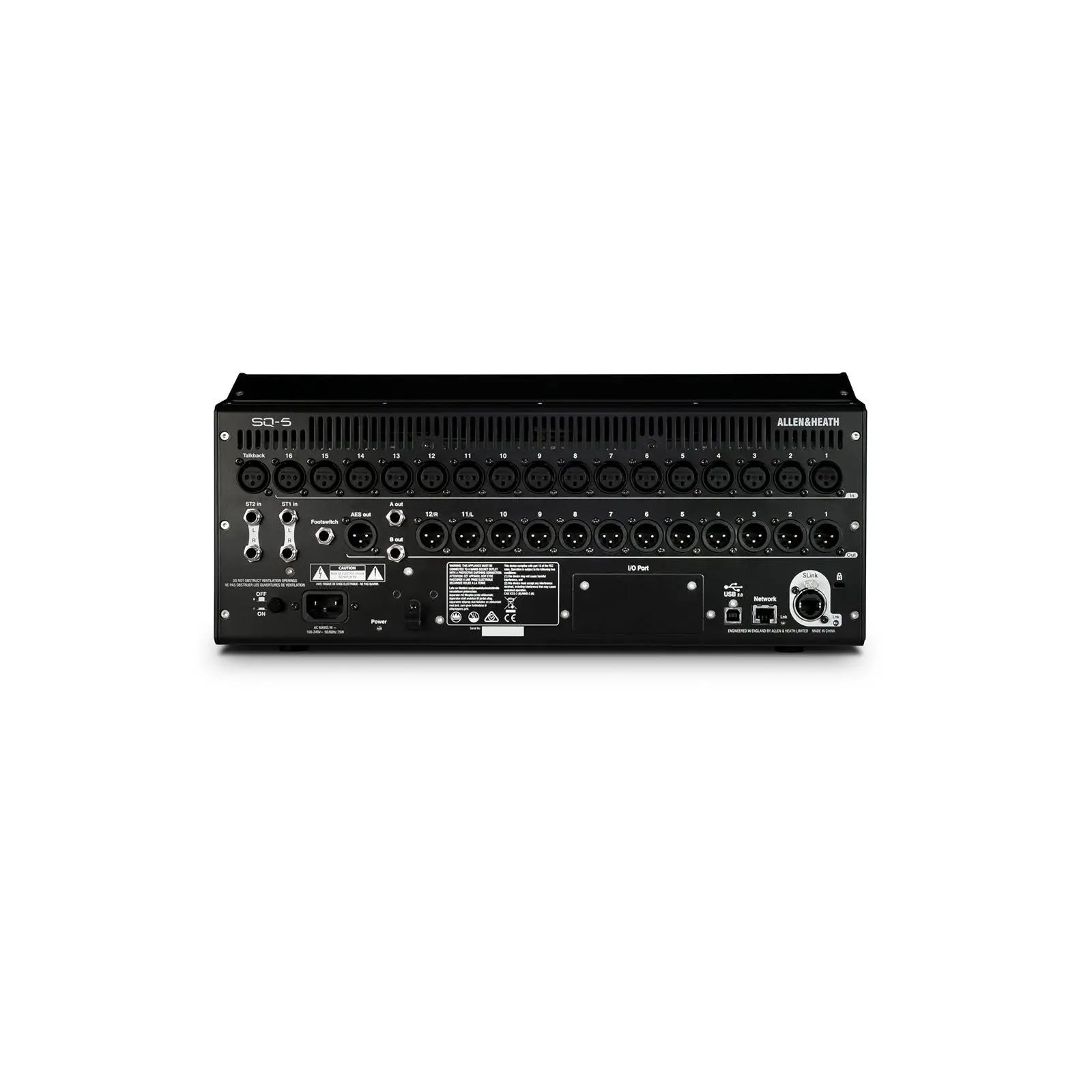 The Allen & Heath SQ-5 is a professional-grade 48-channel digital mixer featuring 96kHz FPGA processing 36 buses and 16 onboard mic preamps. Designed for live sound studio recording and installations it offers ultra-low latency comprehensive I/O options and a user-friendly interface with a 7" capacitive touchscreen. With DEEP processing 8 stereo FX engines and expansion capabilities via SLink and I/O ports the SQ-5 delivers exceptional audio quality and flexibility for demanding audio environments. 48 input channels with 96kHz FPGA processing 36 buses including 12 stereo mixes and 3 stereo matrices 16 onboard XLR mic preamps with recallable settings 8 stereo FX engines with dedicated returns 7" capacitive touchscreen for intuitive control 17 motorised faders across 6 layers for flexible mixing DEEP processing architecture for embedded plugins 32x32 USB audio interface for multitrack recording SLink port for remote audio and I/O expansion 64-channel I/O port for audio networking (Dante/Waves compatible)