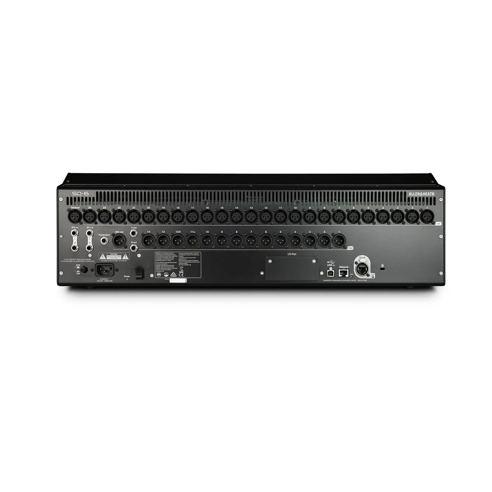 The Allen & Heath SQ-6 is a 48-channel 36-bus digital mixer powered by a 96kHz XCVI FPGA engine delivering ultra-low latency and high-resolution audio. Featuring 24 onboard mic preamps 25 motorized faders 8 stereo FX engines and a 7" capacitive touchscreen the SQ-6 offers extensive mixing capabilities for live sound studio recording and installations. With DEEP processing SLink for remote audio and a 32x32 USB interface it provides flexibility and expandability for professional audio environments. 48 input channels with 96kHz XCVI FPGA processing 36 buses including 12 stereo mixes and 3 stereo matrices 24 onboard XLR mic preamps with recallable settings 8 stereo FX engines with dedicated returns 7" capacitive touchscreen for intuitive control 25 motorized faders across 6 layers for flexible mixing DEEP processing architecture for embedded plugins 32x32 USB audio interface for multitrack recording SLink port for remote audio and I/O expansion 64-channel I/O port for audio networking (Dante/Waves compatible)