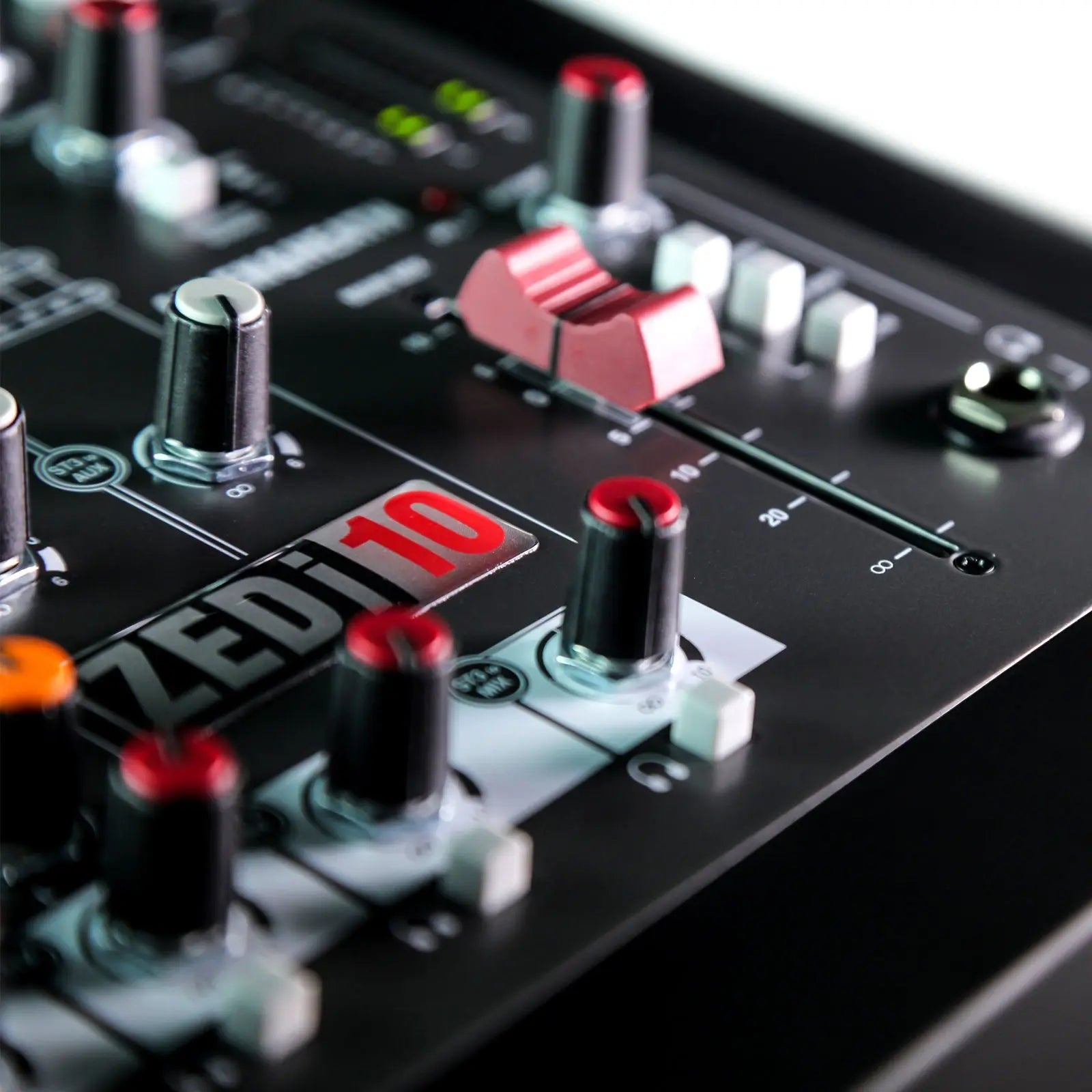 The Allen & Heath ZEDi-10FX combines the warmth of an analog mixer with the flexibility of a 4-in/4-out 24-bit/96kHz USB audio interface and professional-grade effects. Designed for musicians podcasters and small venues it features four GSPre mic/line inputs two stereo line channels Hi-Z instrument-ready inputs and 16 studio-quality FX presets. Ruggedly built for live or studio use the ZEDi-10FX also includes Cubase LE software for powerful recording and production capabilities straight out of the box. 4 mono mic/line inputs with GSPre preamps for high-fidelity audio 2 stereo line channels for keyboards playback or external devices 16 onboard studio-quality digital FX including reverb delay and modulation 24-bit/96kHz USB interface with 4-in/4-out operation for flexible DAW integration Hi-Z input switches on mono channels for direct connection of guitars 3-band EQ on mono inputs and 2-band EQ on stereo inputs 48V phantom power for condenser microphones Rugged all-metal chassis built for touring and studio durability Smooth 60mm main mix fader for precise output control Bundled with Cubase LE and Cubasis LE for music production