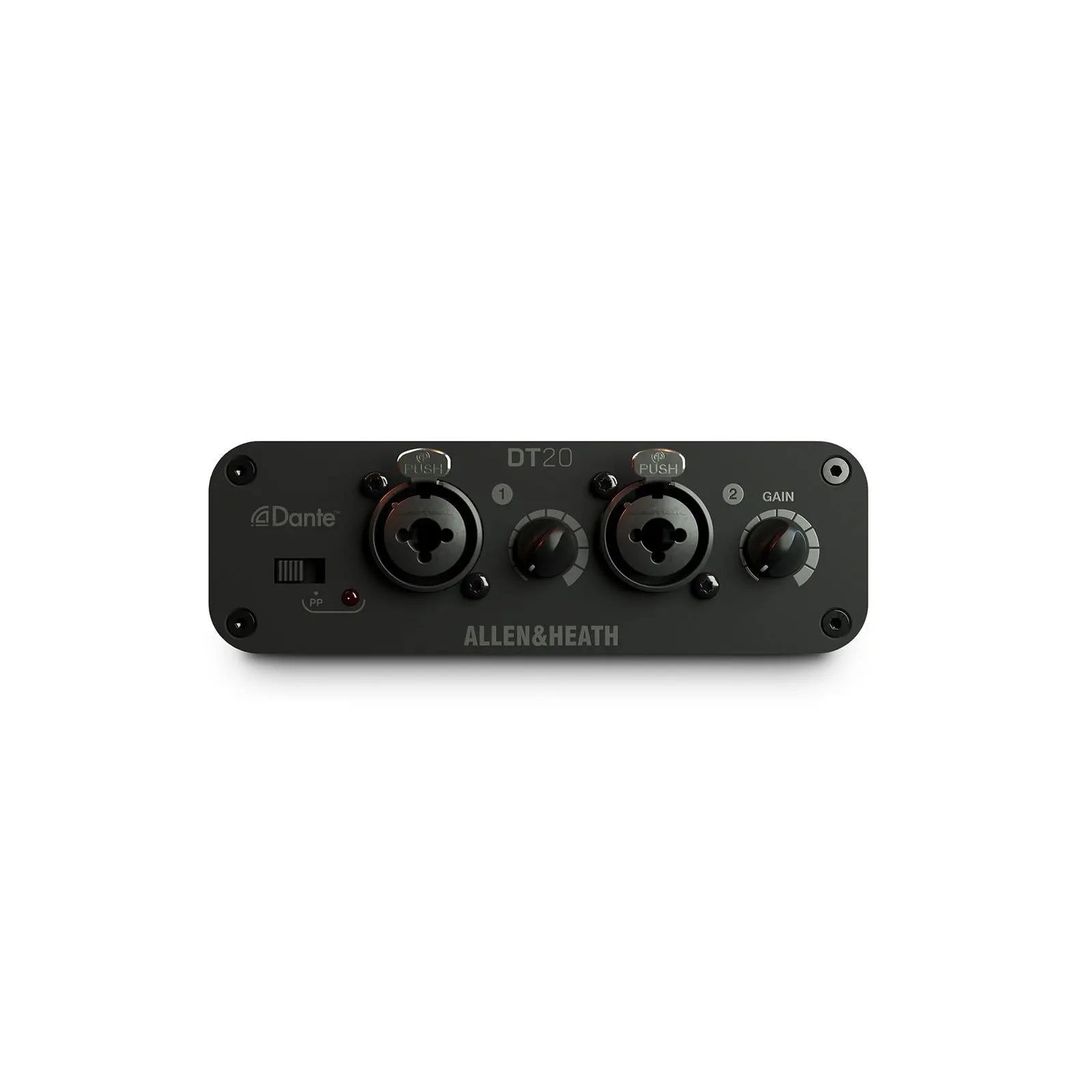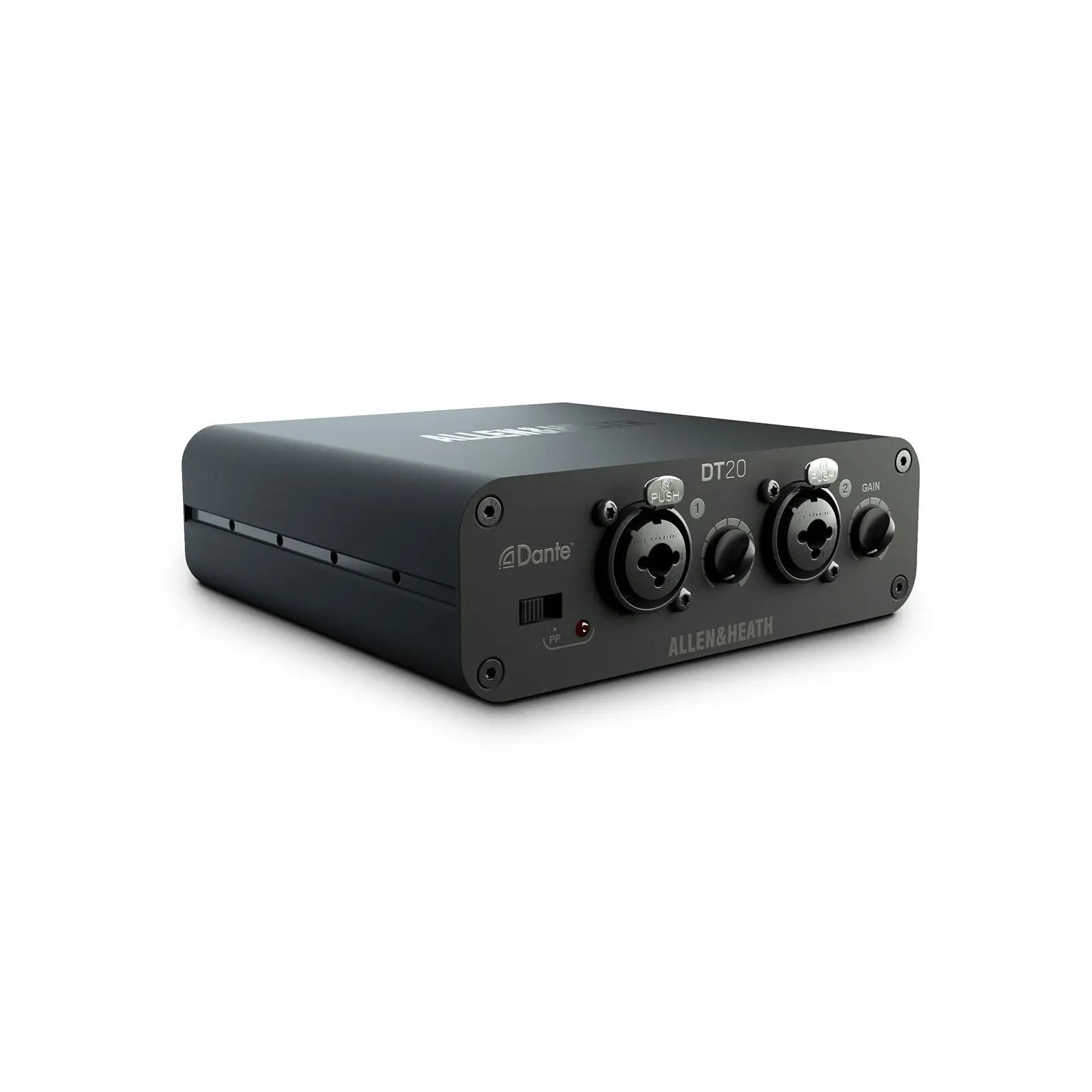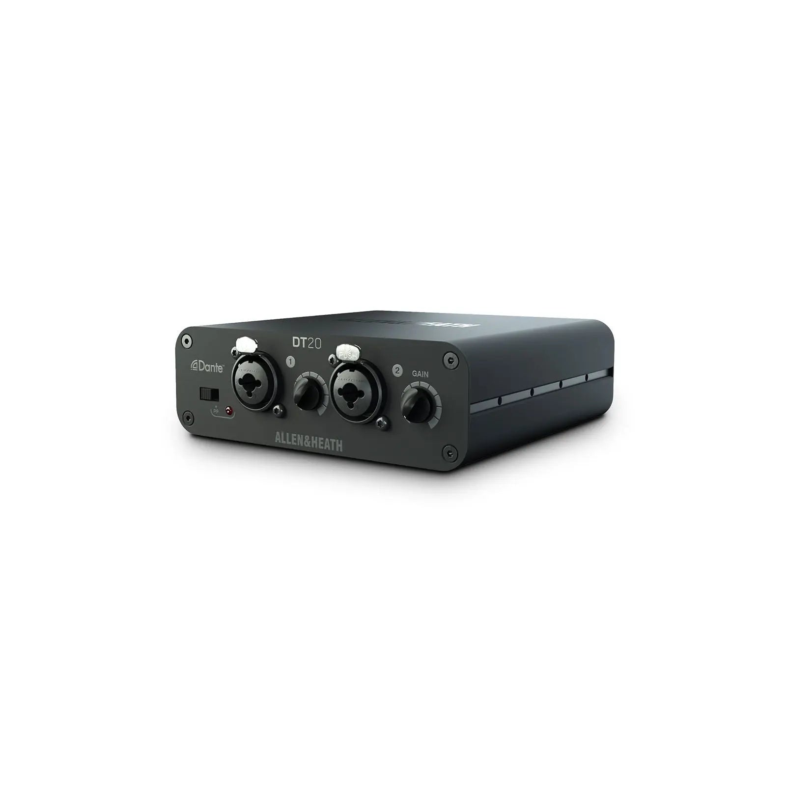 The Allen & Heath DT20M is a compact Dante input interface featuring 2 balanced XLR mic/line inputs for seamlessly integrating analogue audio sources into Dante and AES67 networks. Designed for permanent AV installs the DT20M is ideal where Power over Ethernet (PoE) is available offering flexible deployment without a PSU. With a rugged metal housing and wall/floor mounting capability the DT20M is perfect for corporate education and hospitality environments requiring low-profile Dante audio inputs. 2 balanced XLR mic/line inputs Connects analogue sources to Dante or AES67 networks Operates via PoE (no PSU included) Wall or floor mountable compact housing Plug-and-play setup with Dante Controller Ideal for corporate AV education and hospitality venues AES67 compliant