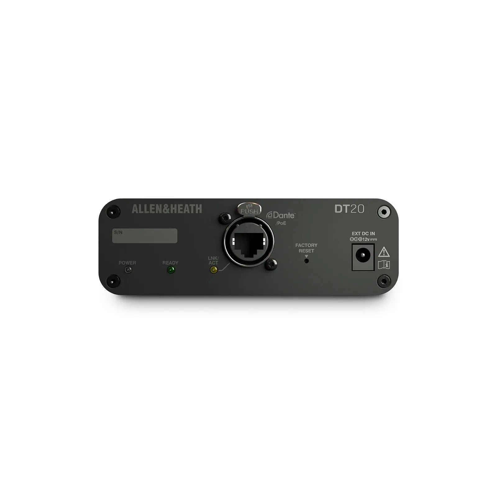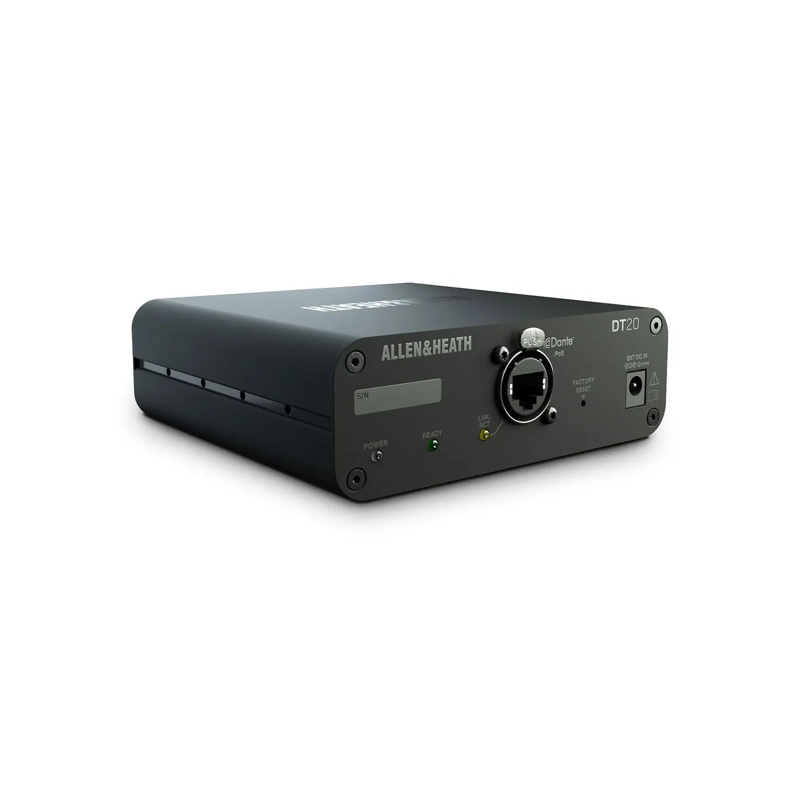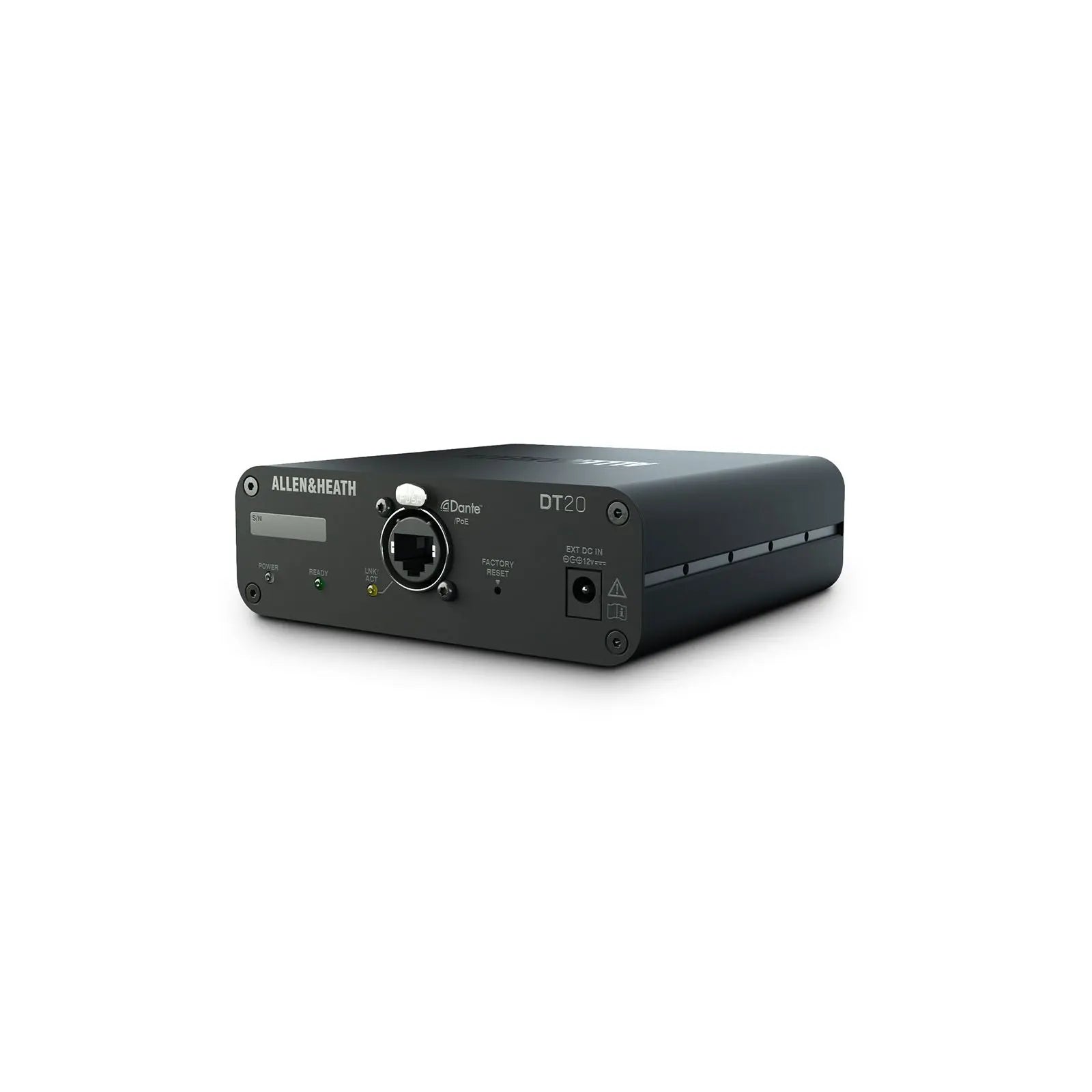 The Allen & Heath DT20M is a compact Dante input interface featuring 2 balanced XLR mic/line inputs for seamlessly integrating analogue audio sources into Dante and AES67 networks. Designed for permanent AV installs the DT20M is ideal where Power over Ethernet (PoE) is available offering flexible deployment without a PSU. With a rugged metal housing and wall/floor mounting capability the DT20M is perfect for corporate education and hospitality environments requiring low-profile Dante audio inputs. 2 balanced XLR mic/line inputs Connects analogue sources to Dante or AES67 networks Operates via PoE (no PSU included) Wall or floor mountable compact housing Plug-and-play setup with Dante Controller Ideal for corporate AV education and hospitality venues AES67 compliant