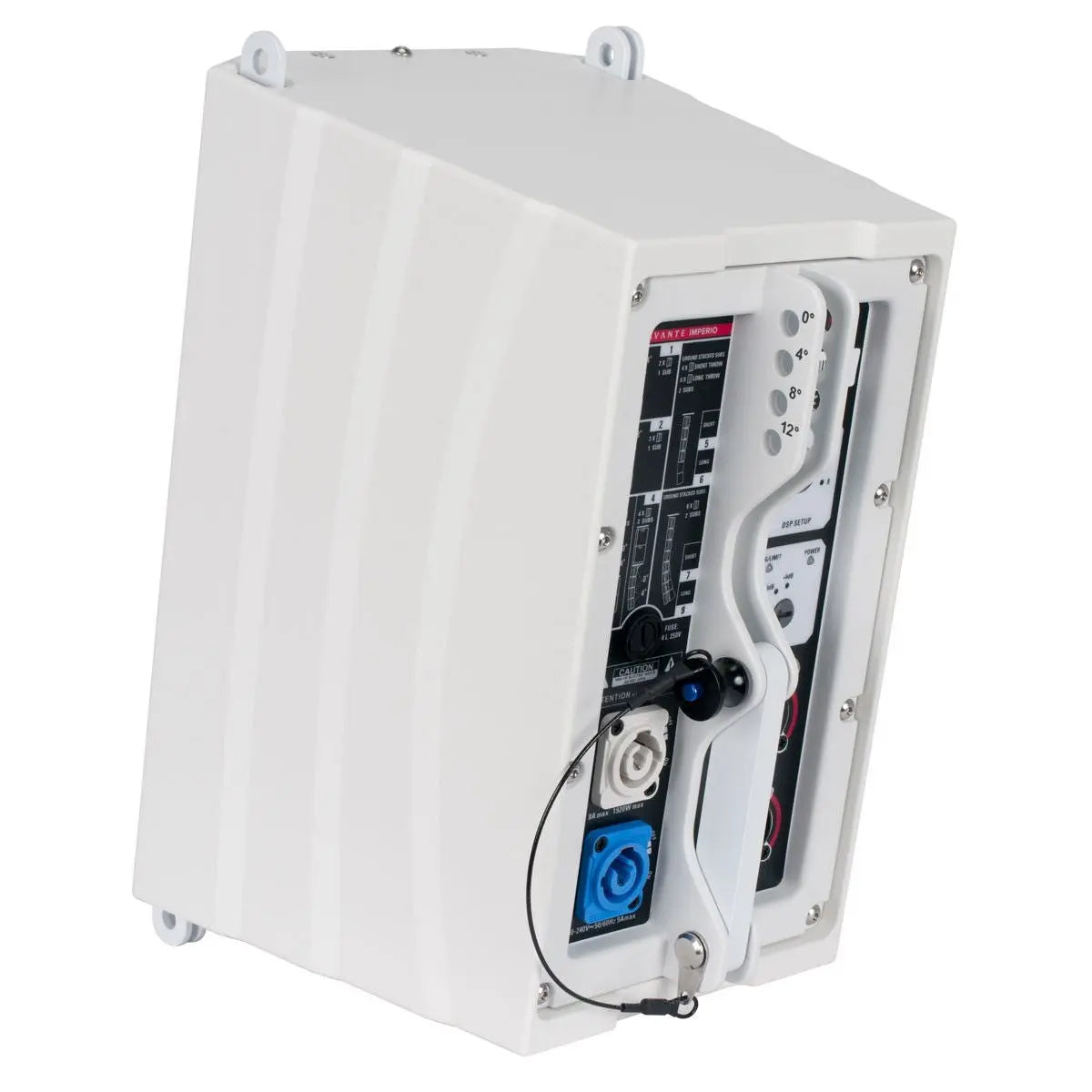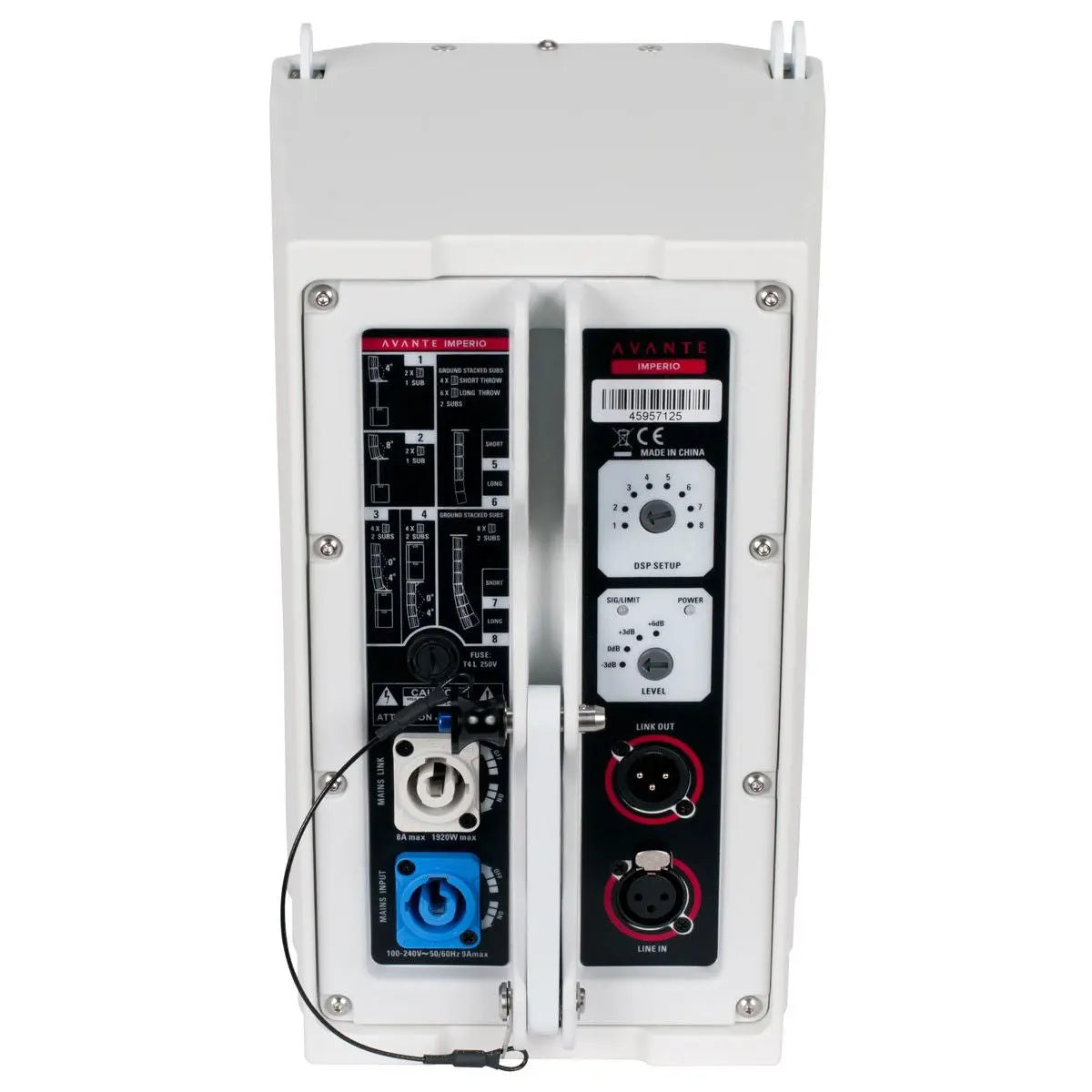 240W RMS Class D Power Amplifier with dual 4.75" woofers and 6x 1.75 IDVAT (inverted Dome Vertical Array Technology) HF Drivers. Part of the Imperio Mini Line Array Series with White housing.