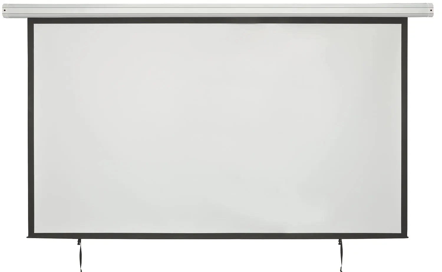 A range of large format projector screens with built-in electric motor controlled via the in-line switch or remote control. The screen is housed in a white steel case with mounting brackets on either end, allowing installation onto ceilings or walls. The screen itself has a weighted bottom bar to prevent the screen jamming in the case or curling. Various sizes available for all types of installation such as classrooms, auditoriums or places of worship.