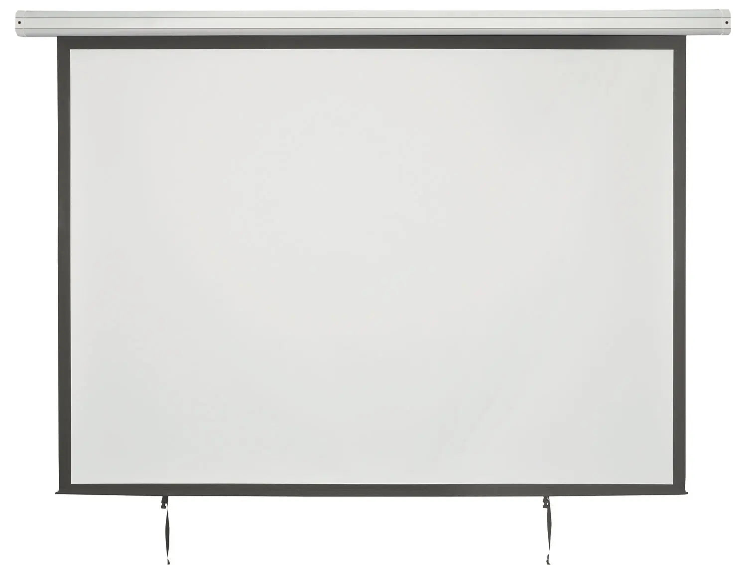 A range of large format projector screens with built-in electric motor controlled via the in-line switch or remote control. The screen is housed in a white steel case with mounting brackets on either end, allowing installation onto ceilings or walls. The screen itself has a weighted bottom bar to prevent the screen jamming in the case or curling. Various sizes available for all types of installation such as classrooms, auditoriums or places of worship.