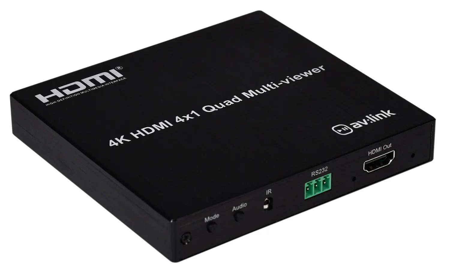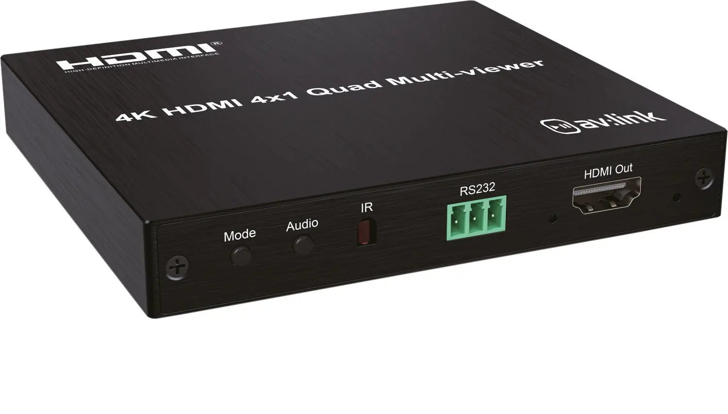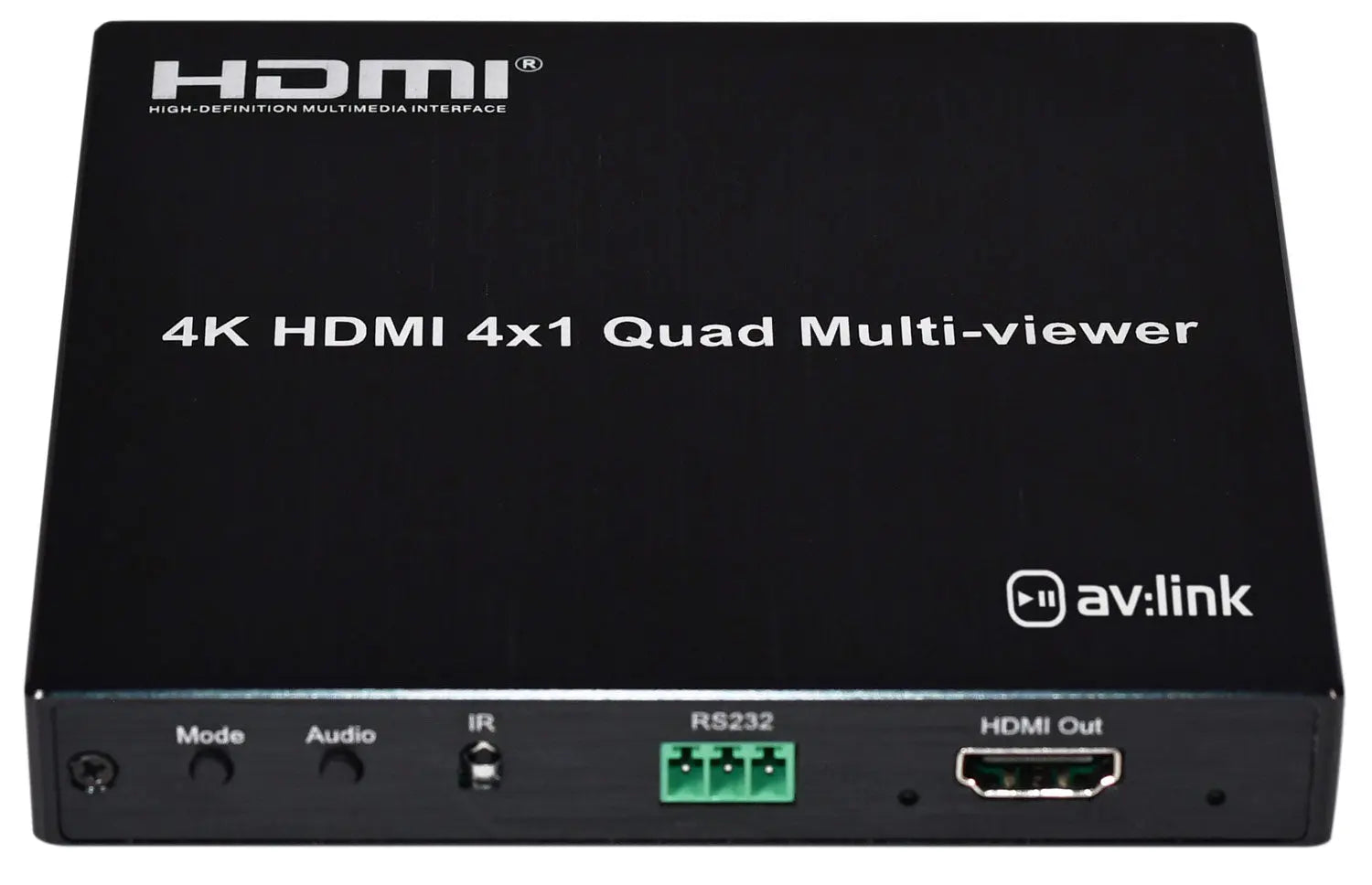 This high-performance 4x1 HDMI Multi-viewer offers seamless display of up to four 4K input sources simultaneously on a single 4K UHD display. Unlike many comparable devices that downscale multiple inputs to a lower-resolution output, this unit preserves the full input resolution.