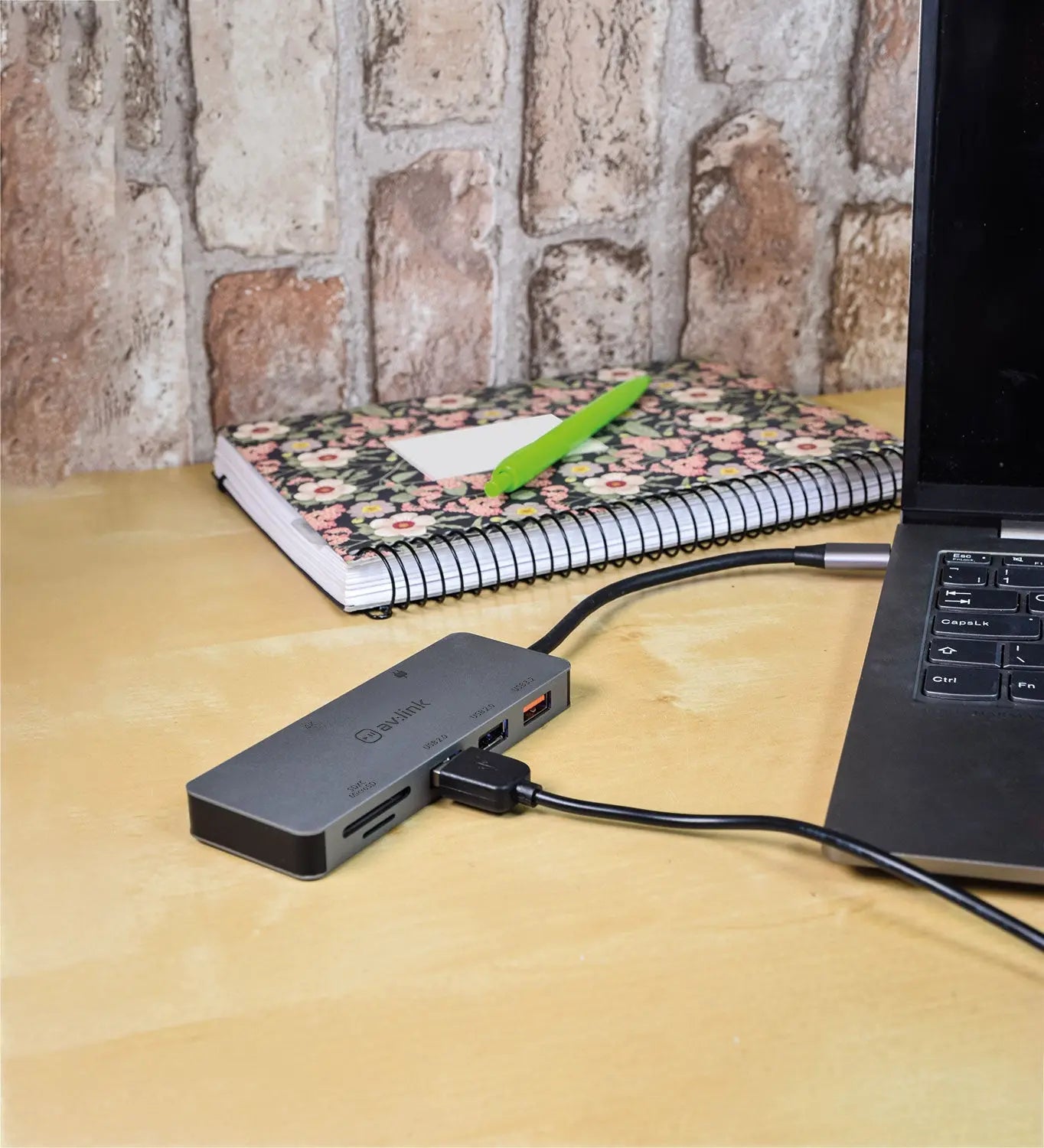 Rugged and stylish super-speed hub for providing additional ports to laptops, PC’s and smart devices with a USB Type-C port. The compact and lightweight design makes it ideal for working on the move, expanding your laptops USB Type-C port into a HDMI port, USB3.0 Type-C PD charging port, USB3.2 Type-A port, two USB2.0 Type-A ports and SD/MicroDC card reader slots.