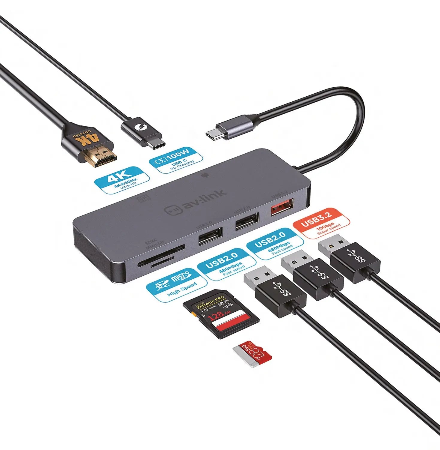 Instantly provides a HDMI port, USB3.0 Type-C PD ,USB3.2 Type-A, 2x USB2.0 Type-A ports, SD and MicroSD card slots