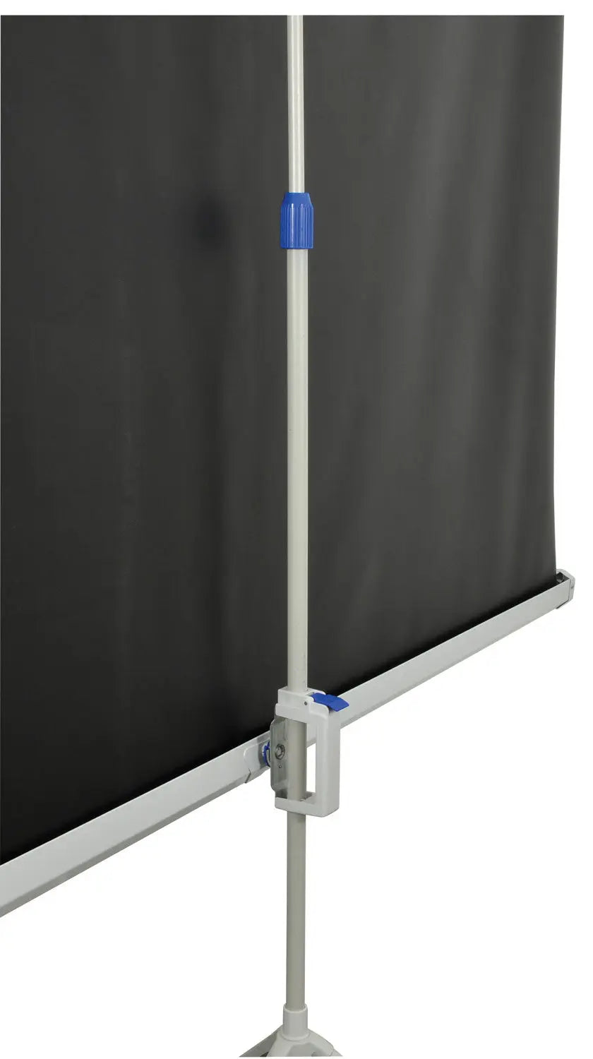 A projector screen housed in a white steel case and mounted on a tripod stand. This freestanding unit can be quickly assembled by pulling the screen up and hooking it onto the integral backrest. The screen simply retracts and the stand folds up for protection and storage when not in use. An ideal solution for educational environments, business presentations and home cinema use.
