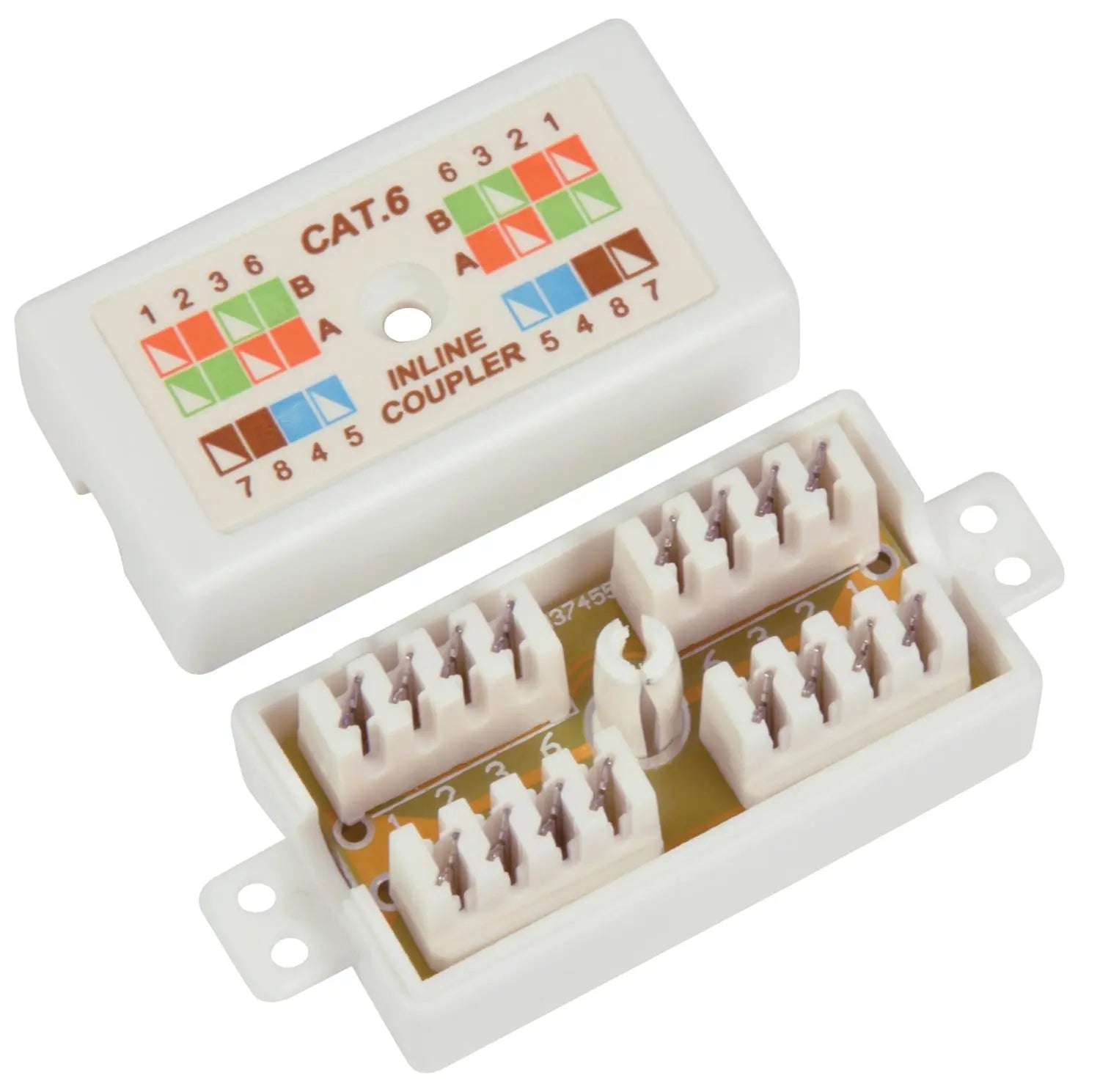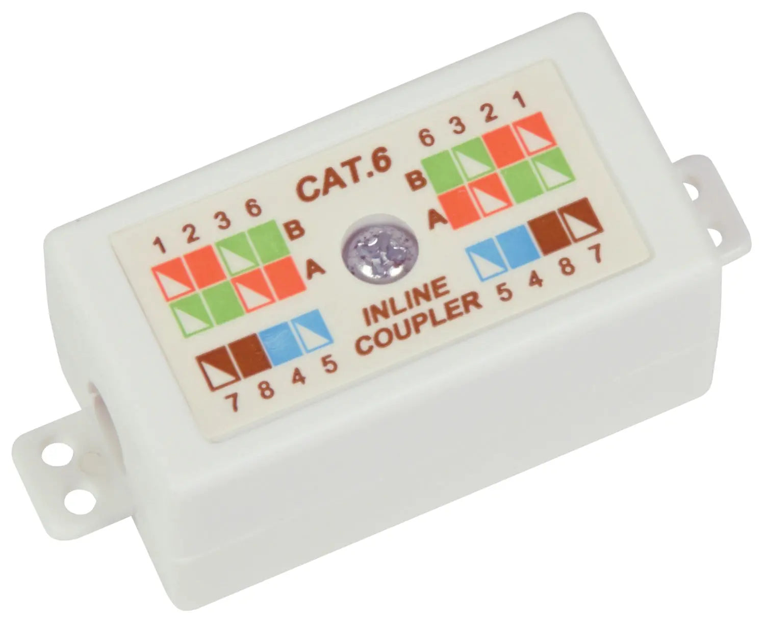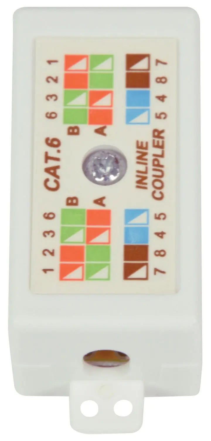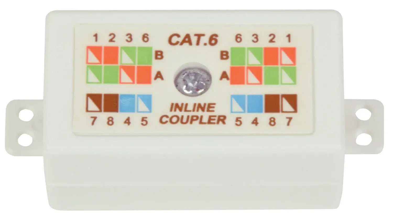 Cat6 Inline Coupler provides an excellent solution for connecting two solid network cables together. The product features a coloured wiring label on top of the box for easy installation. Cat6 Inline Coupler is perfect for when needing to extend a cable to another location or joining back together a cable if cut too short.
