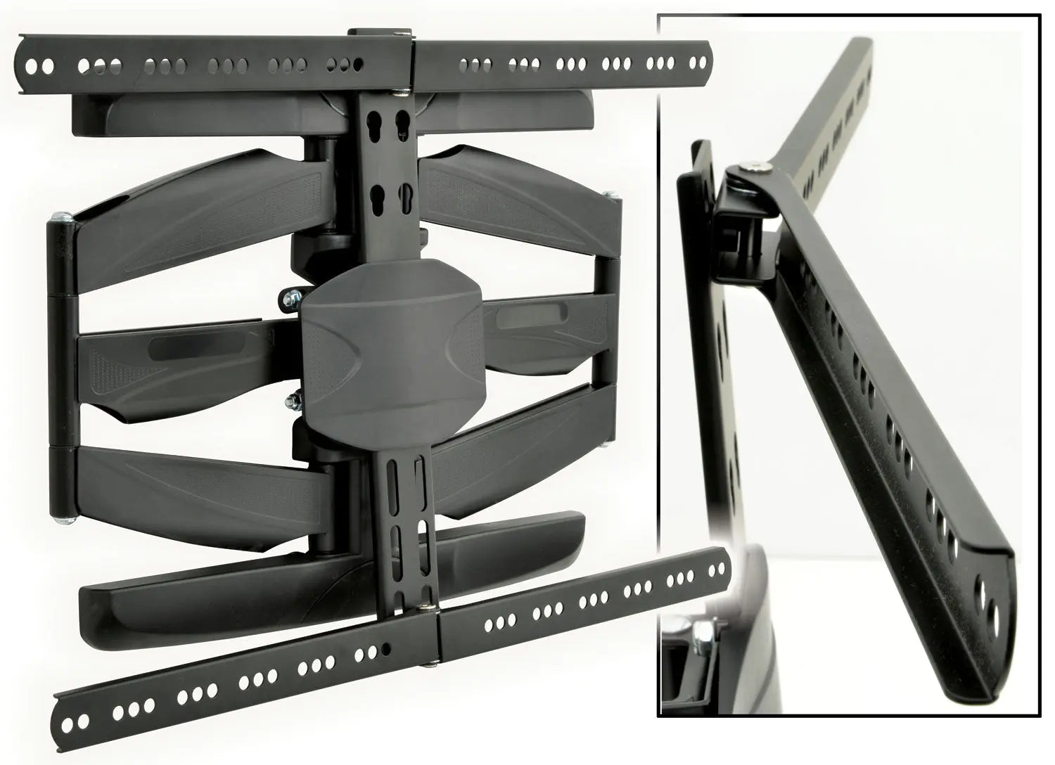 This full motion TV wall bracket has a special angle adjustable mount which will accommodate both flat and curved screens. Its suitable for screen sizes from 32" to 75" or with VESA mounting patterns up to a maximum of 600x400mm.