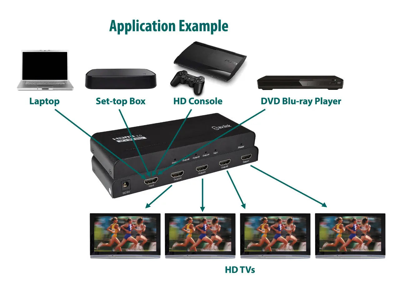 Ideal for entertainment, hospitality and other commercial venues requiring multiple display feeds from a single HDMI source