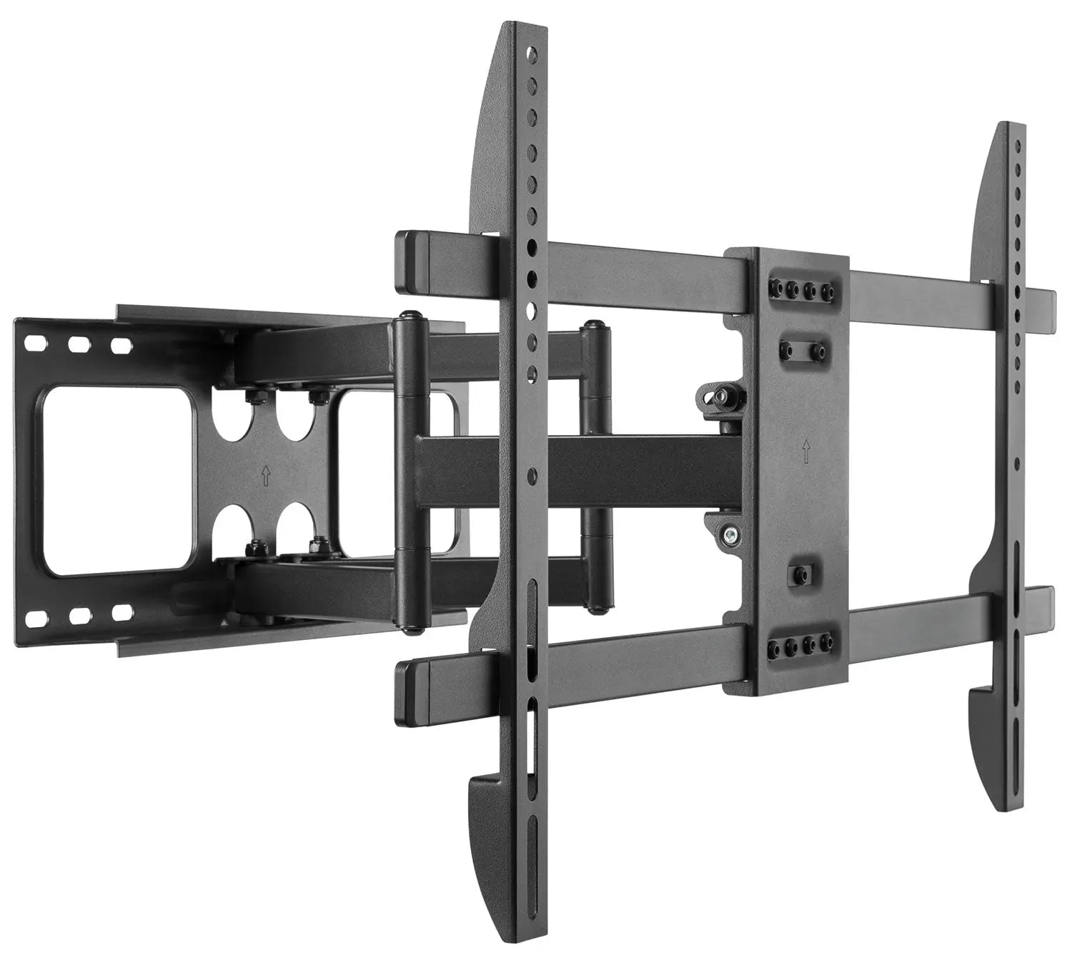 Heavy-duty TV wall bracket, suitable for larger LCD/LED screens from 37" to 80" and up to 60kg in weight. Its full motion double arm design provides maximum flexibility with extend, tilt and swivel capabilities providing easy viewing from any seat in a room. The easy to assemble, low profile design will save you wall space while the included hook and loop tapes will keep your cables clean and tidy.