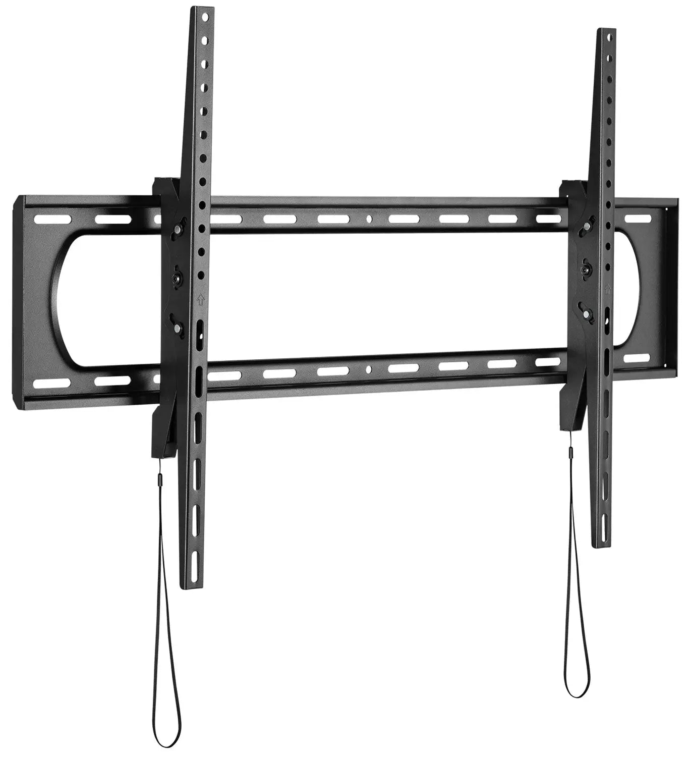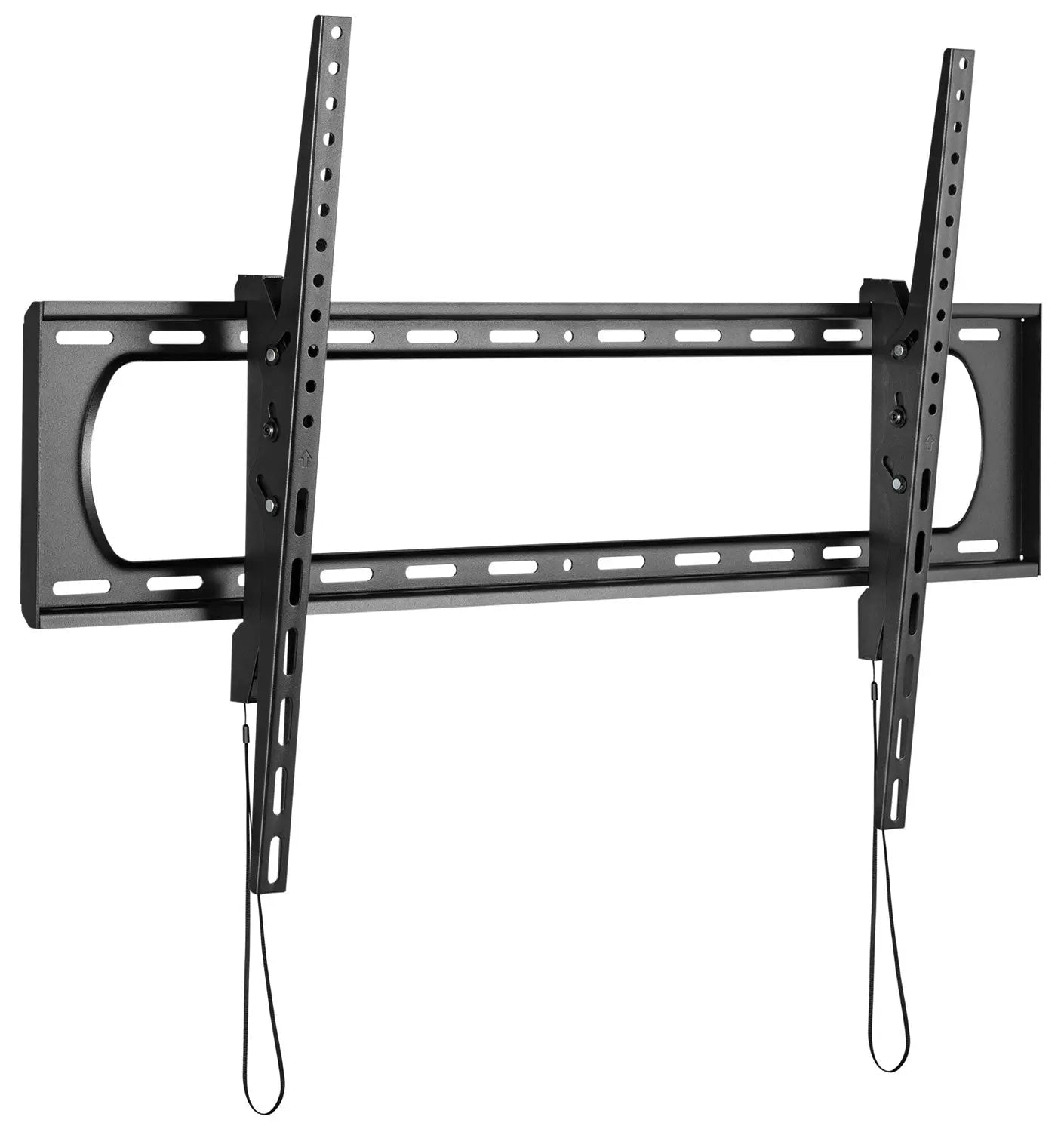 A heavy-duty, easy to assemble tilting wall mounting for extra large TVs up to 120" in screen size and 120kg in weight. Designed for quick and easy installation and removal via the self-locking mechanism that can be opened by simply pulling on 2 drawstrings either side of the unit. Supplied with a large range of installation hardware, these brackets are ideal for both home and business applications.