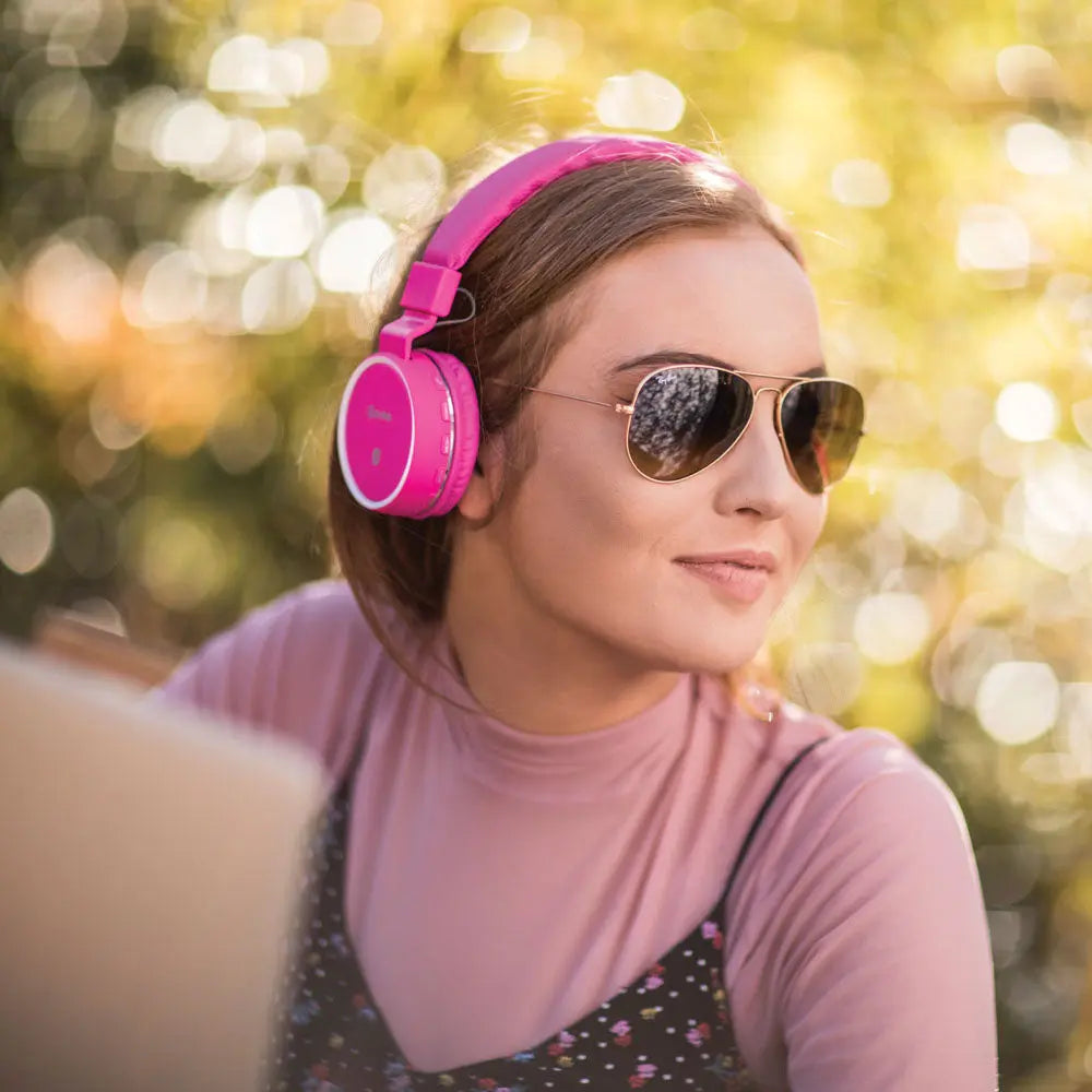 These incredible rechargeable wireless headphones are great for listening to your music whilst on the move. Pair via Bluetooth with your smart device and control your media with the MP3 function control keys on the edge of the earcup. Alternatively play MP3 or WAV media files from a micro SD card using the slot in the side of the earcup. In-built is an FM radio and a microphone allowing hands free calls. These headphones offer a fantastic listening experience with dynamic bass technology. The noise cancelling effect blocks out background noise making them perfect for use on public transport. Lightweight and comfortable, you can relax into your music, and when you are done, fold them away and store in the carry pouch.