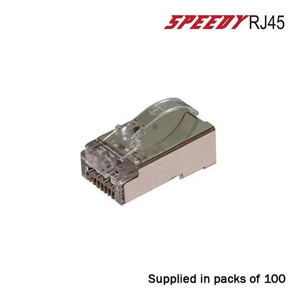 Our SPEEDY RJ45 PREMIER anti-snag arc-latch feedthrough plug for Cat 6 or Cat 6A shielded cable combines two innovations in the same item. The now-established feedthrough design simplifies twisted pair terminations while at the same time twist is maintained enabling a better performing crimp. The new snagless latch design avoids the need for an anti-snag from the strain relief boot; leads can more easily be removed from panels or sockets without the encumbrance of rubber boots. Strain relief boots can be omitted without risking snagging. CAT6 shielded Housing: Polycarbonate UL 94-V2 Contact: 50µ“/1.27µm gold plated over nickel phosphor bronze