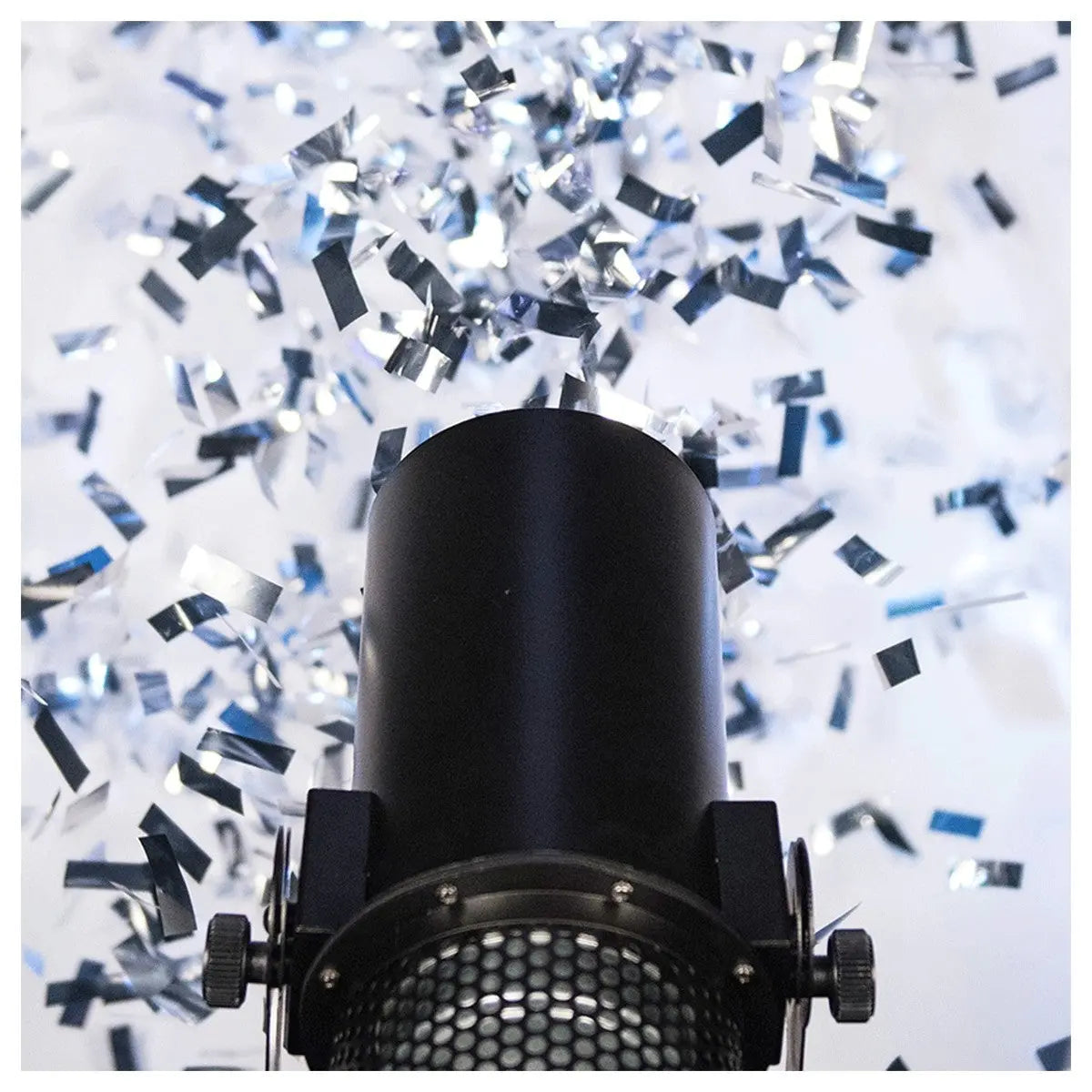 Continuous Flow Operation: No compressed air or CO2 required. The high-velocity internal fan provides a continuous stream of confetti for as long as needed.