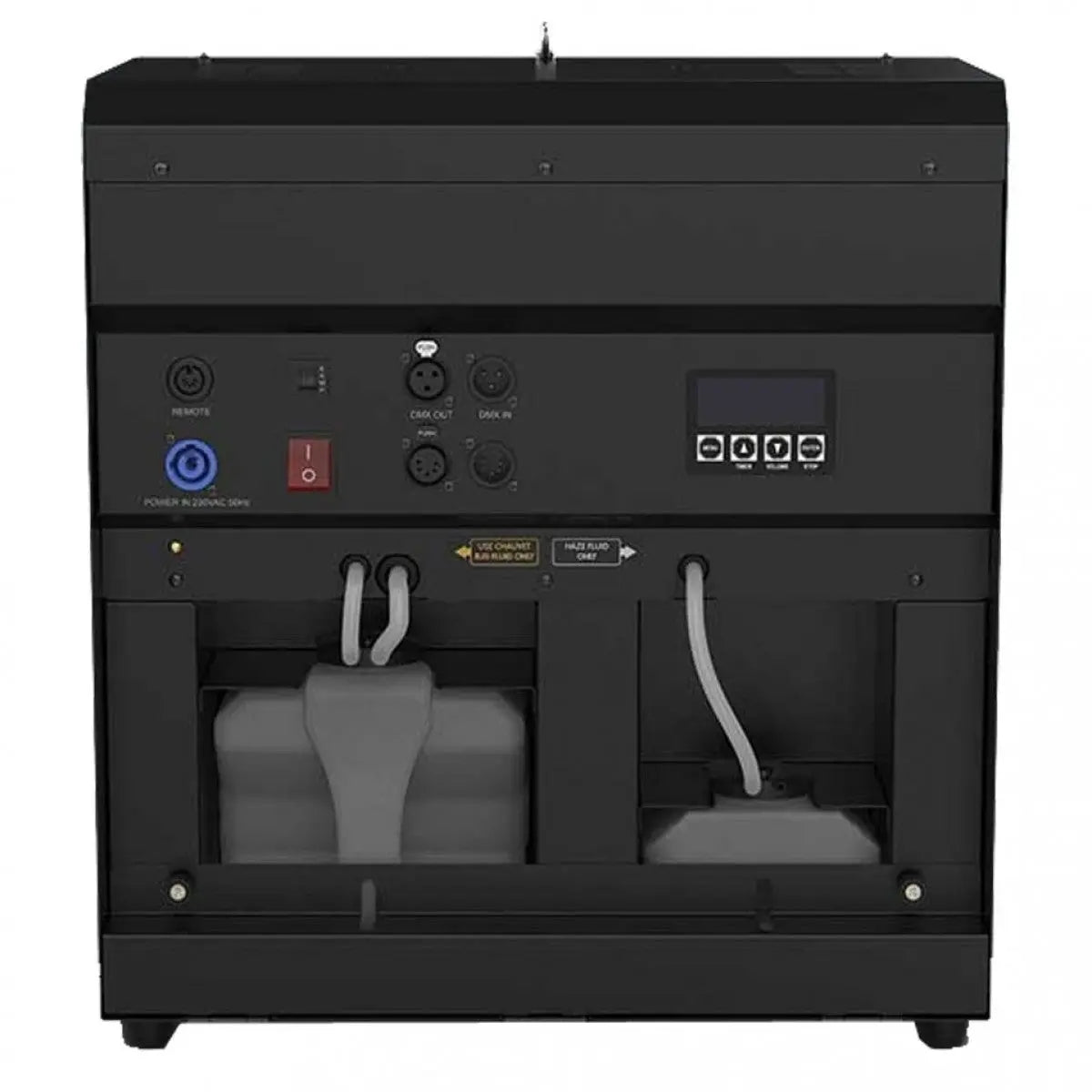 Upon first set-up, it began to produce the haze quickly, but the bubbles took quite a bit longer. When the machine did start to produce them, they came through sparingly until the machine had been running consistently for a short while. I suspect this had something to do with needing to push air through on first use, so do not be disheartened. When the tubes had cleared enough for the bubble fluid to flow freely, it produced hundreds of haze filled bubbles, which pop creating an awesome effect. I will be using this at Halloween and I suspect it will be a big hit. - One word of note, it is quite heavy, so if you're going to have it on a stand, make certain the stand can sustain the weight. A shelf, for example, will not hold it.