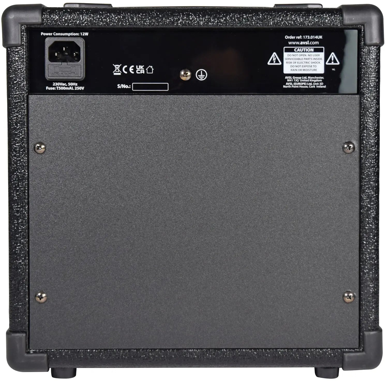 Classically styled guitar combo in a vinyl covered cabinet with angled control panel and basket-weave style grille cloth. Front control panel is recessed with retro "chicken-head" control knobs and additional features for Gain, Volume and EQ, with an additional Drive boost switch. Custom solid-state circuitry is voiced to produce authentic vintage-style clean and driven tones. BT wireless pairing capability can be used for playing backing tracks for solo practice or just as a playback device. An ideal practice or recording amplifier for electric guitar players.