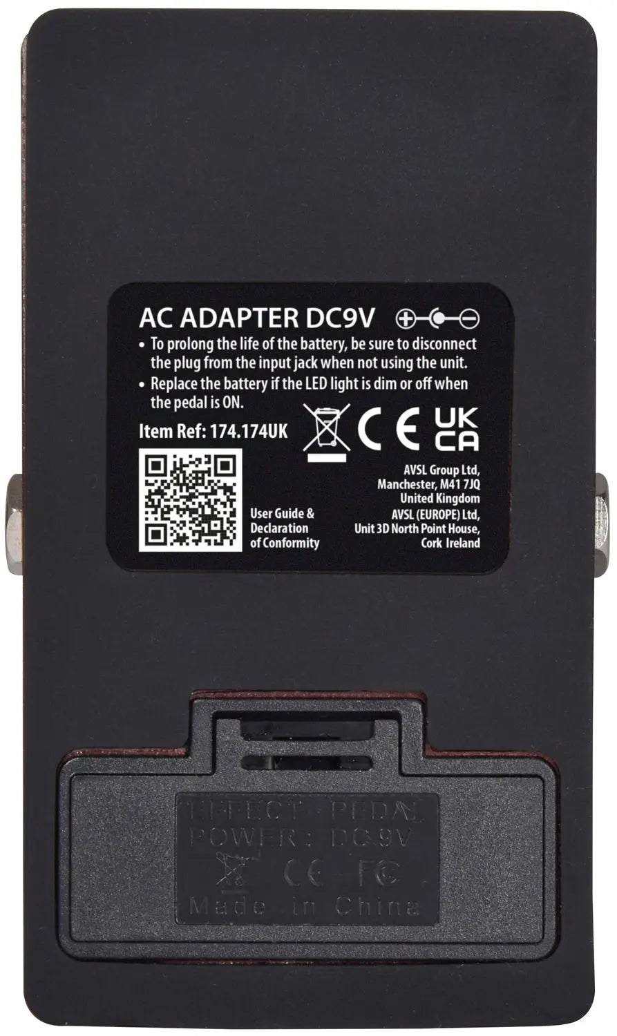 Power supply 9V battery (PP3 included) or optional DC adaptor