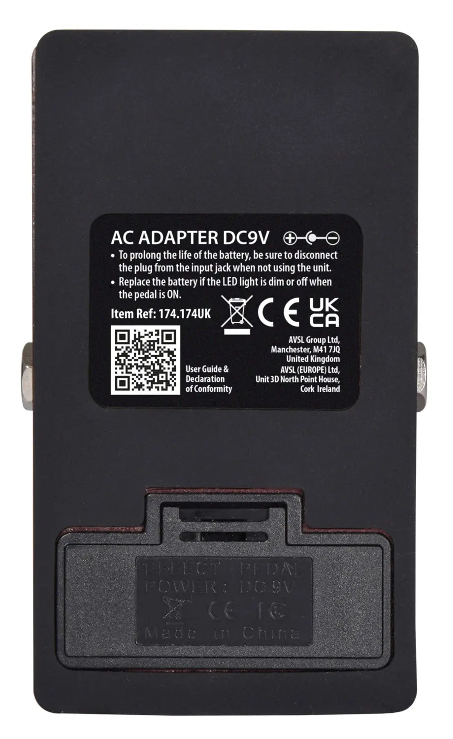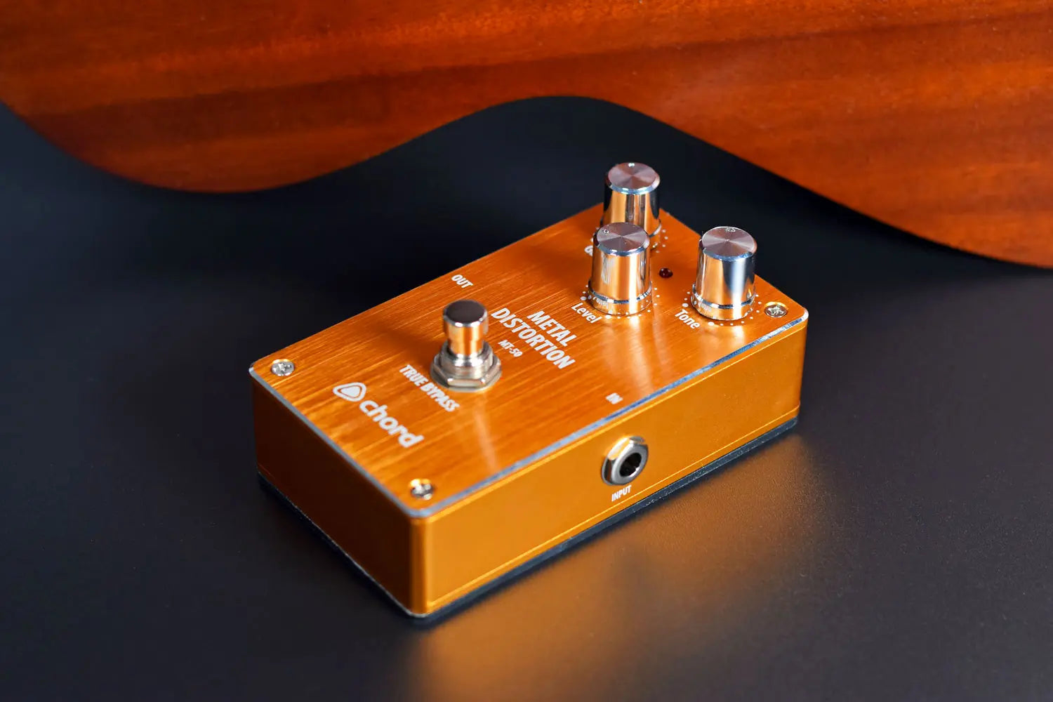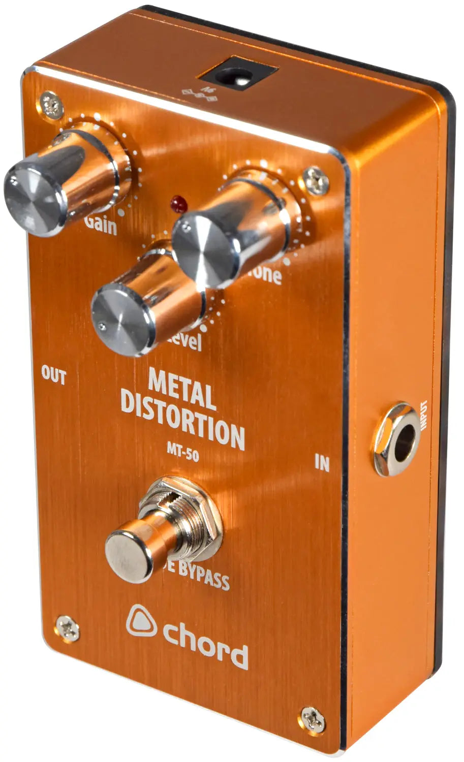 A hard hitting distortion effect pedal, ideal for metal and hard rock styles. Dial in the desired amount of distortion with Gain and set the output Level to suit. Tone adjusts the amount of grit and bite to accentuate the guitar sound if needed. High gain on demand for high energy music.