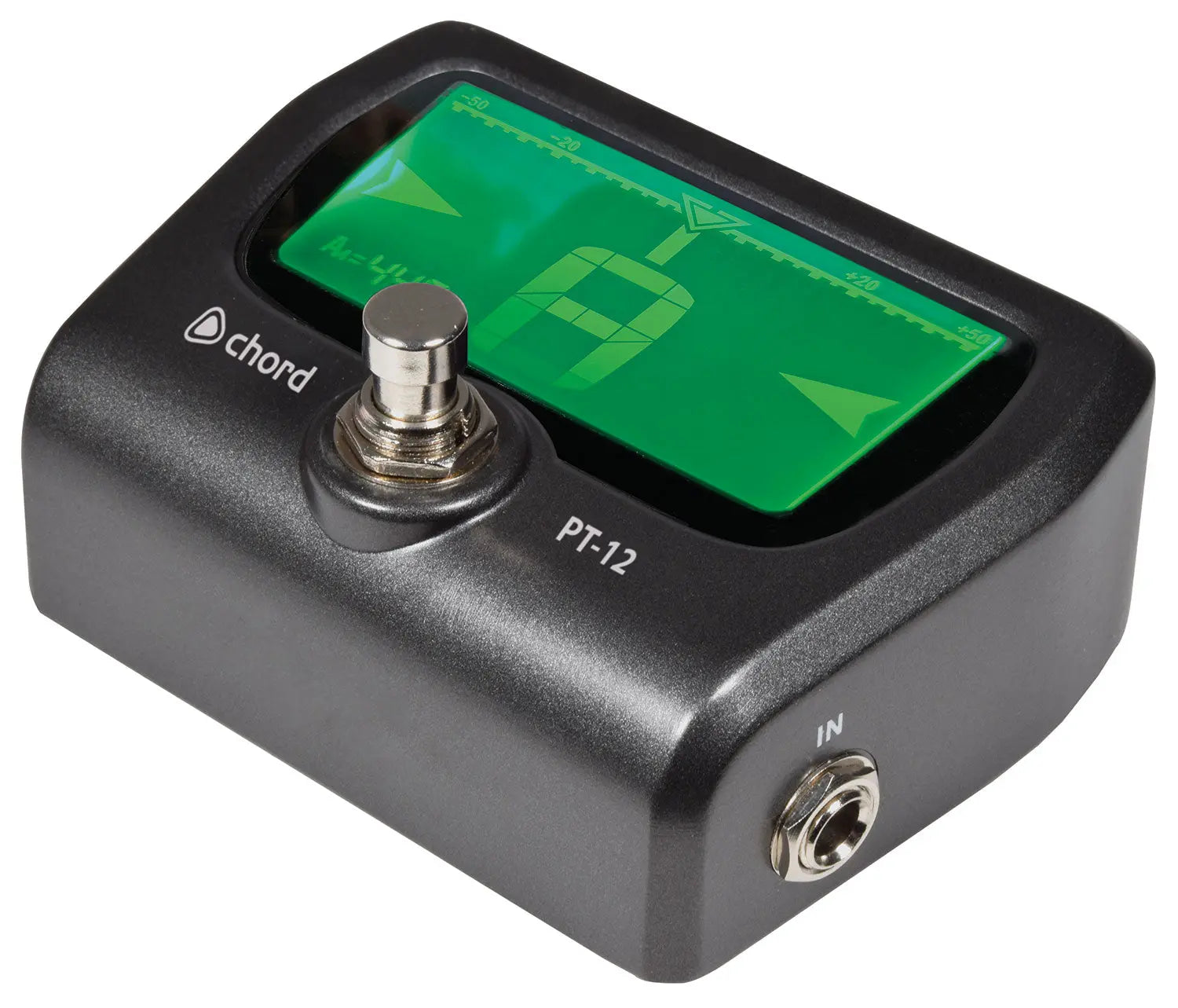 A pedal based digital chromatic tuner with extra large backlit LCD display for easy visibilty at floor level. Large note symbols and a colour changing backlight make the tuning process easy and intuitive. Pressing the footswitch activates the tuner and mutes the output. Tuning calibration is set by a rear mounted push button. Battery powered or external 9Vdc operation with pass-through DC jack for convenience. An essential addition for multi-pedal setups.