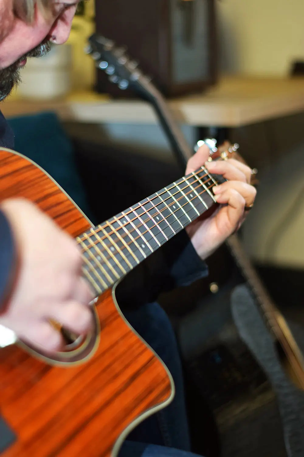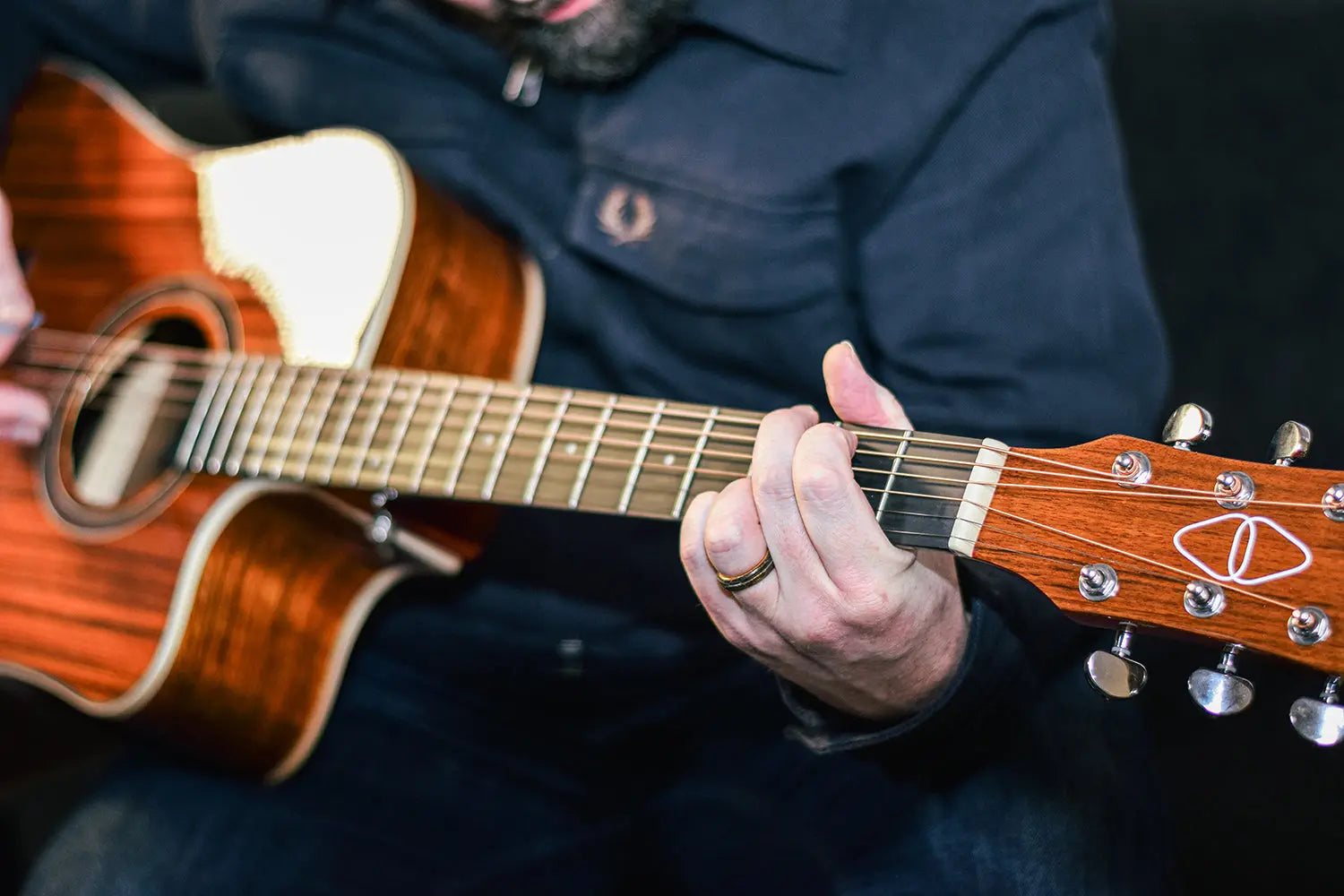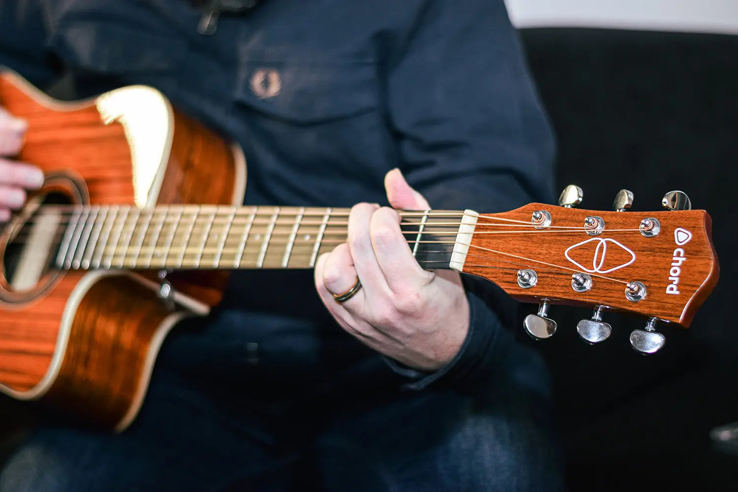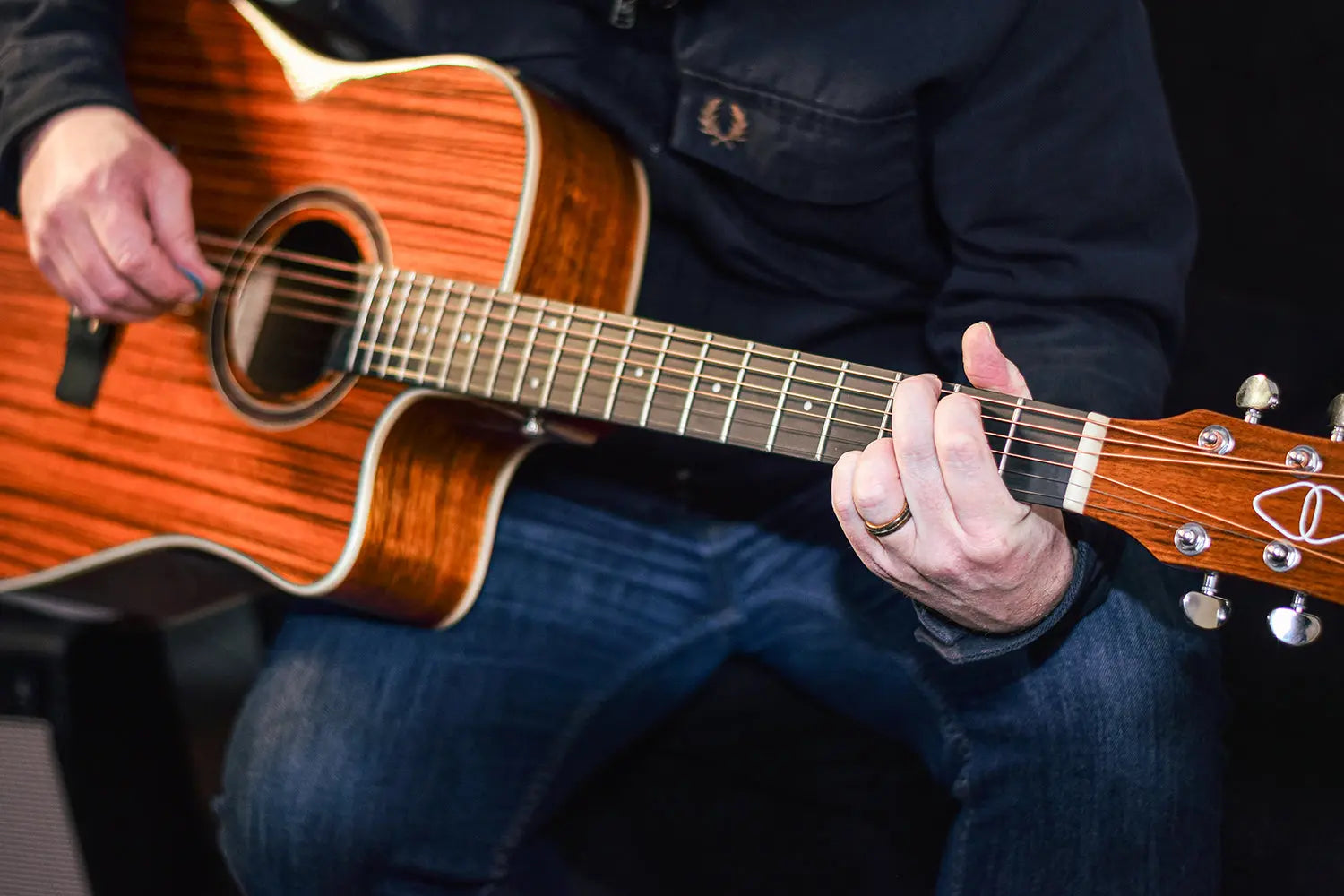 Western style electro-acoustic guitar with a venetian cutaway. Fitted with a 3-band active EQ and inbuilt tuner. The body is constructed from figured wood laminates in a high gloss finish to accentuate the attractive woodgrain. The Okoume neck holds an HPL fingerboard with 20 low profile frets. In addition to its natural good looks, the Sundown guitar is an eminently playable guitar with pro-level features for live performances, studio sessions and songwriting.
