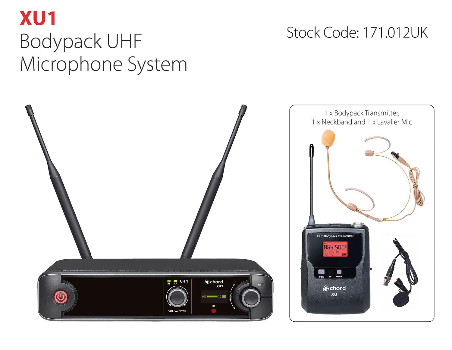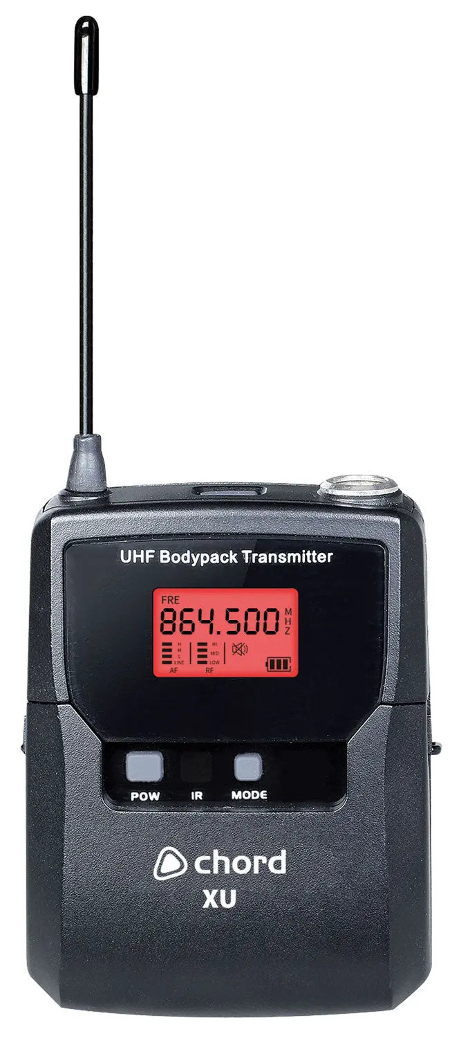XU series wireless microphone systems offer pro-level features in a compact receiver with premium microphone transmitters. Supplied as a half-width 1U rack receiver with 1, 2 or 4 channels of either handheld microphones or bodypack transmitters with a neckband and lavalier mic option. The receiver is a true diversity type with dual antennas and internal distribution for minimizing dropouts. The front panel has a volume control and indicator LEDs per channel alongside a colour TFT display with level indications for each channel and settings for channel frequencies and colours. Each transmitter also has its own LCD display for frequency and battery status, with a backlight that can be set to one of 6 colours for identification. Carrier frequencies are arranged in 10 groups with carriers in both the UK/EU license-free UHF and PMSE licensed duplex gap UHF bands. Each set is supplied with hardware for mounting into a 1U rack space with extension cables to enable front mounting of the antennas. For a wireless microphone system with straightforward operation and intuitive features, the XU series delivers freedom and reliable operation to vocalists, presenters and instructors in a compact and convenient package.