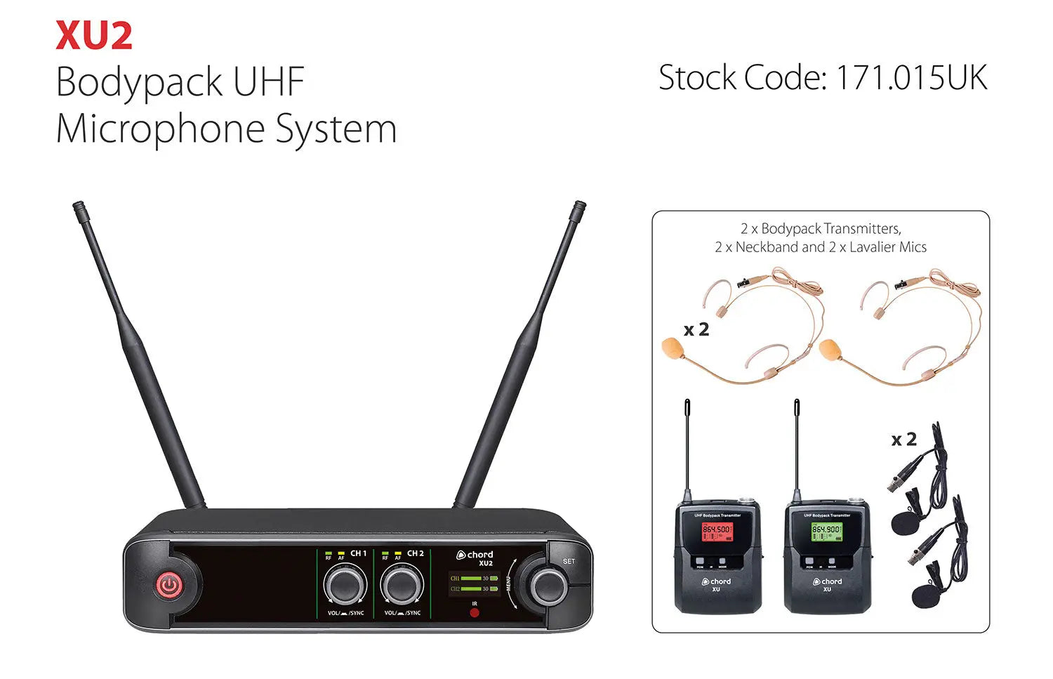 Chord XU2 Dual Bodypack UHF Microphone System