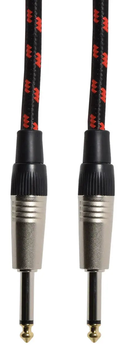 A retro style, nylon-braid-covered guitar, instrument or audio lead for unbalanced signals. The anti-tangle braiding provides added protection for the cable within; made with pure copper conductors and cotton-reinforcement; a soft-grip, anti-tangle, rubberised jacket; machine-soldered connections; and professional, die-cast 6.3mm straight mono jack plugs.