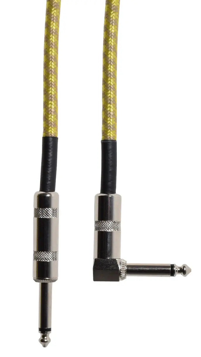 A retro style, nylon-braid-covered guitar, instrument or audio lead for unbalanced signals. The anti-tangle braiding provides added protection for the cable within; made with pure copper conductors and cotton-reinforcement; a soft-grip, anti-tangle, rubberised jacket; machine-soldered connections; and professional, die-cast 6.3mm mono jack plugs.
